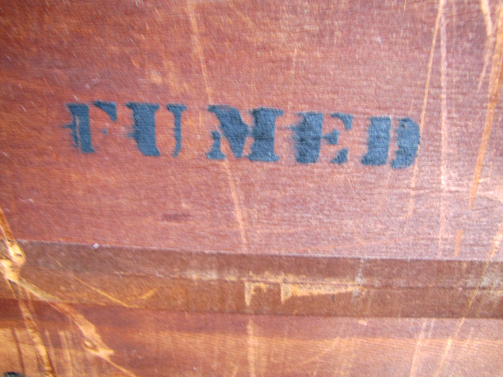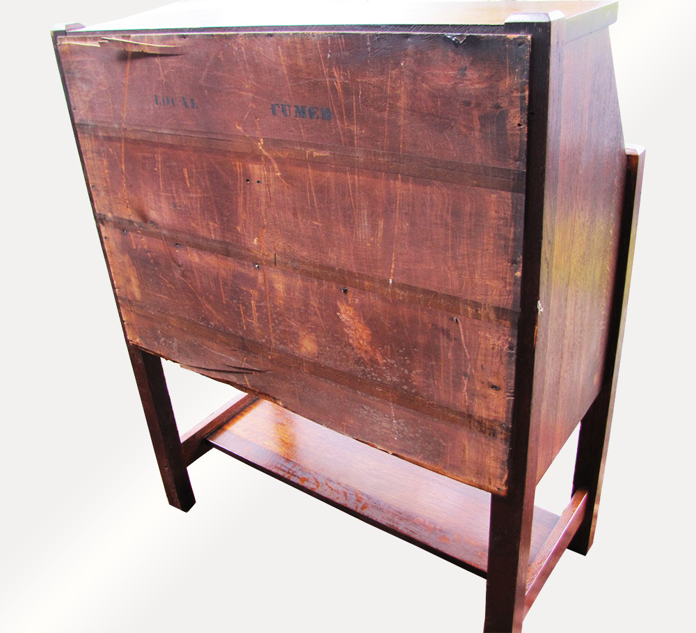 This desk has a superb selection of 1/4 sawn oak. This desk is marked with FUMED. (See Pictures)