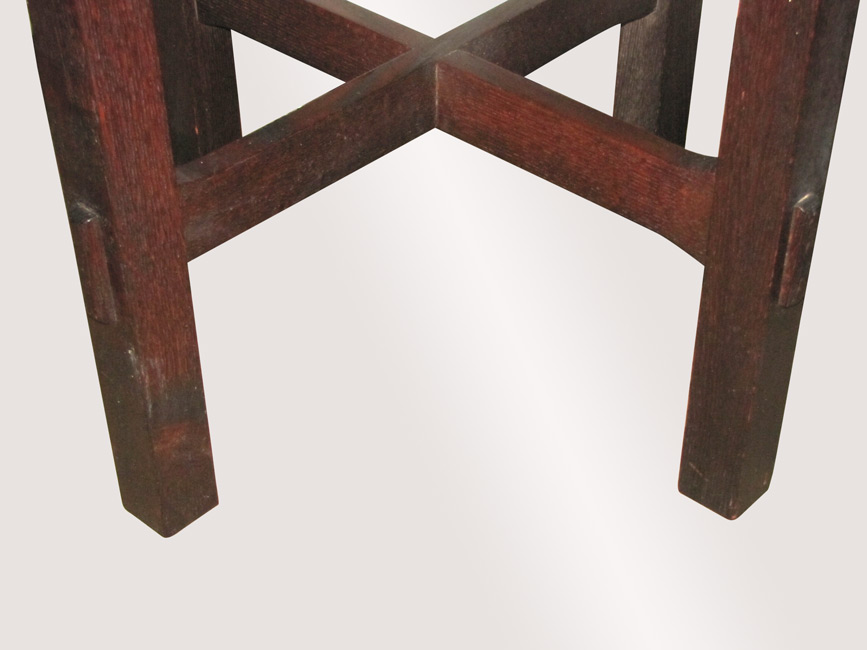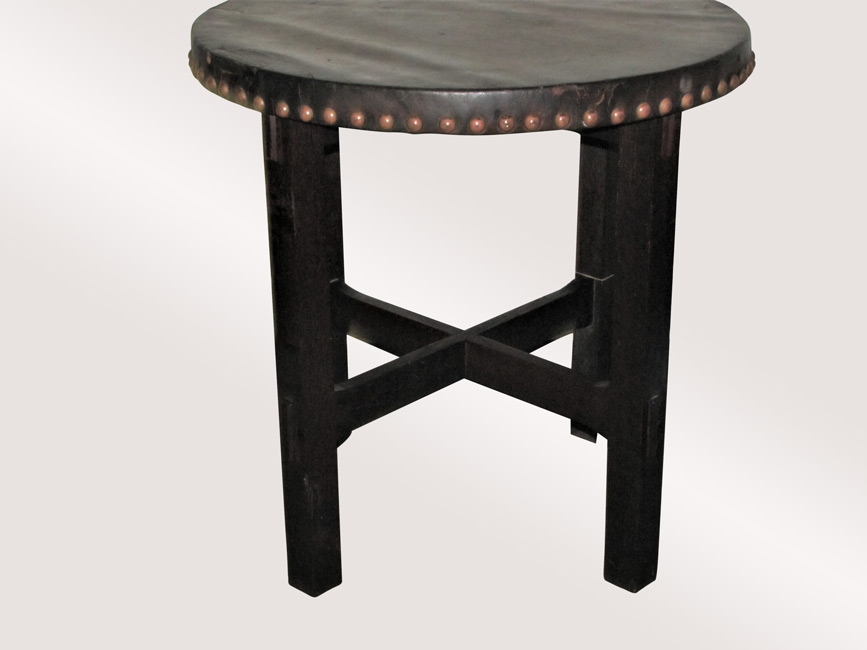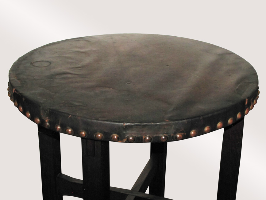 This is an Antique Arts & Crafts Leather Top Table from the early 1900’s.