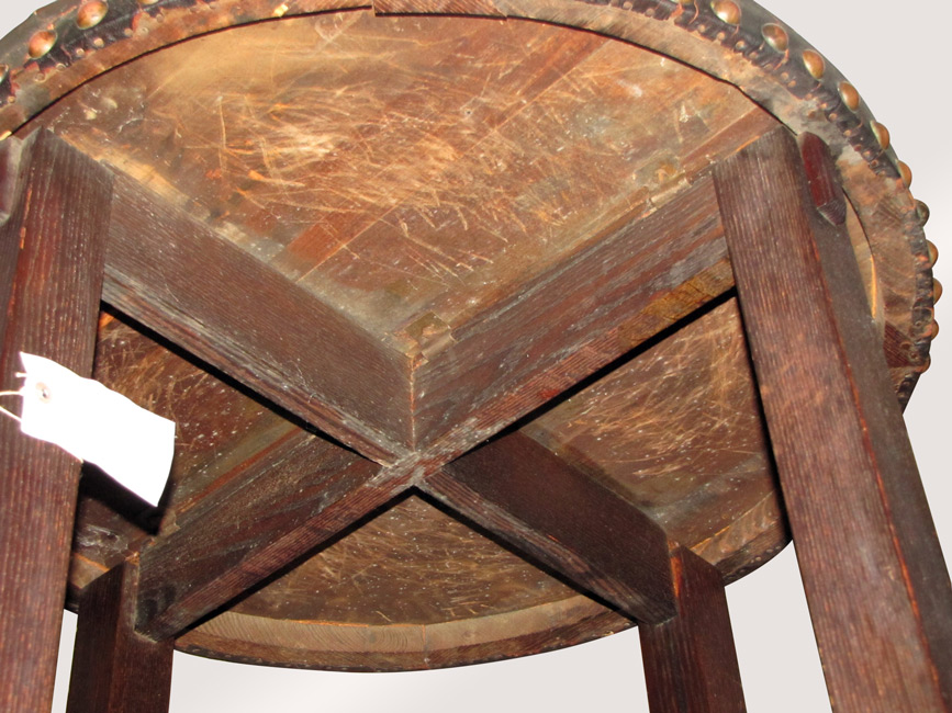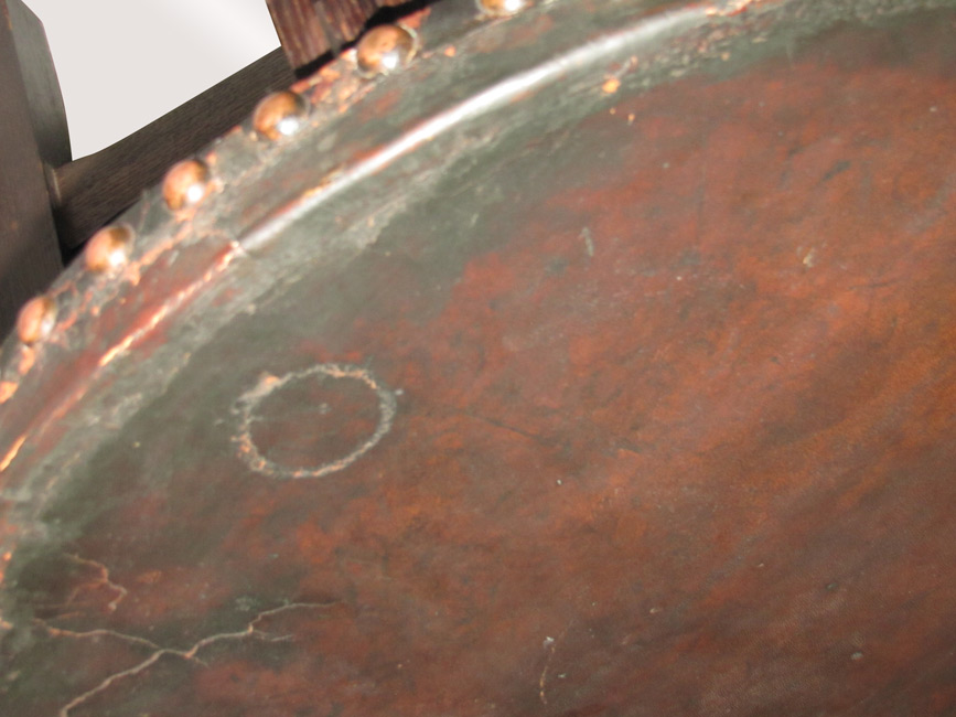 This table has the original leather top with all of the original tacks.