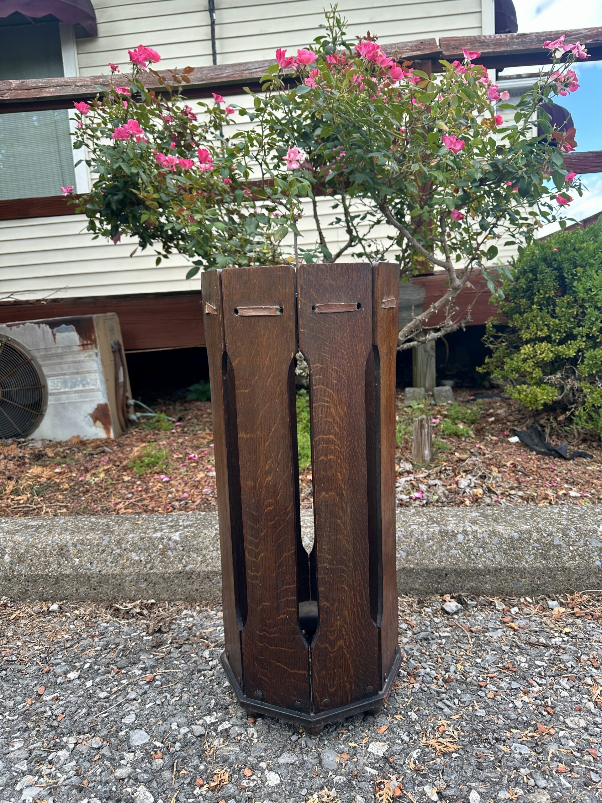 This is an Antique Arts & Crafts Stand by “Shop of the Crafter” stand in very good condition. It has the original finish.