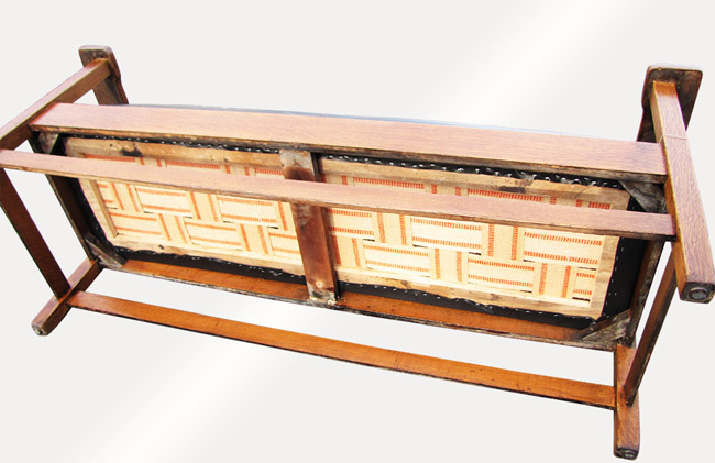 Recovered seat and the back with top quality black leather with 100% cotton fill with hair (no cheap foam) over natural cotton webbing.