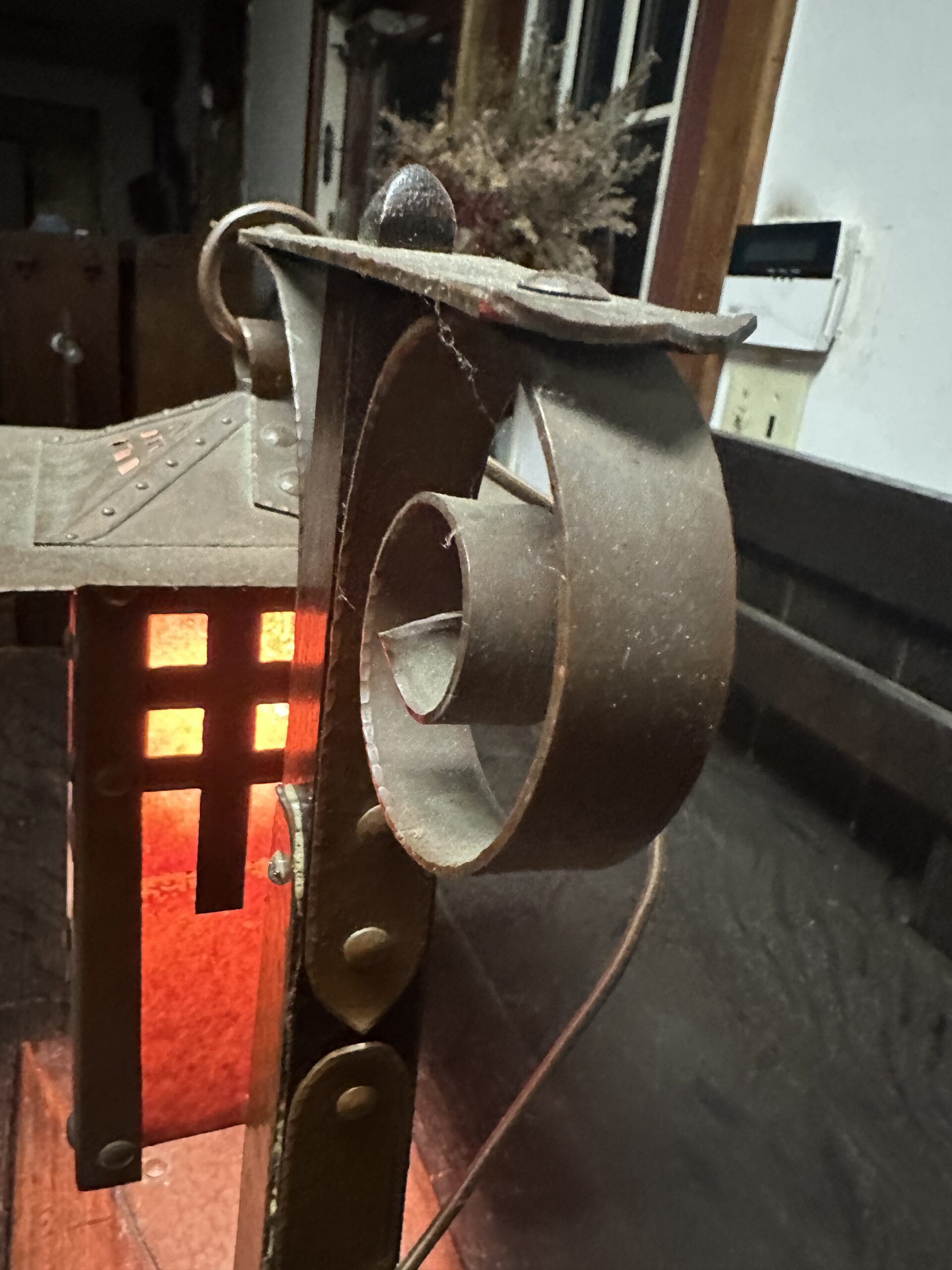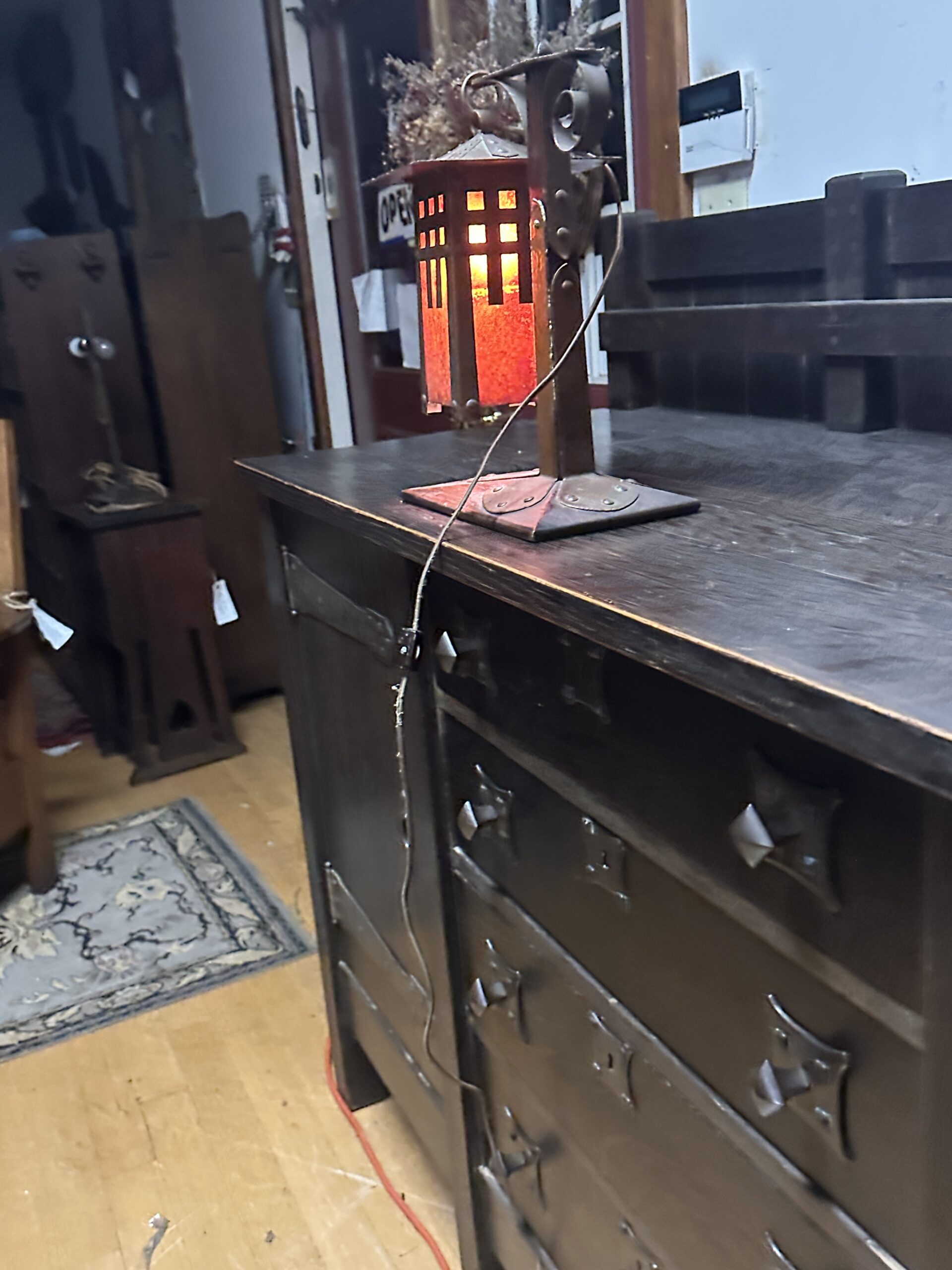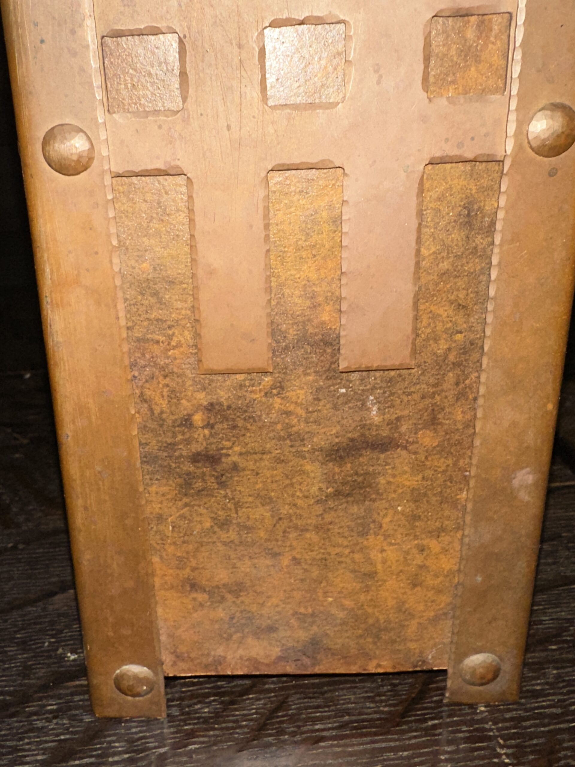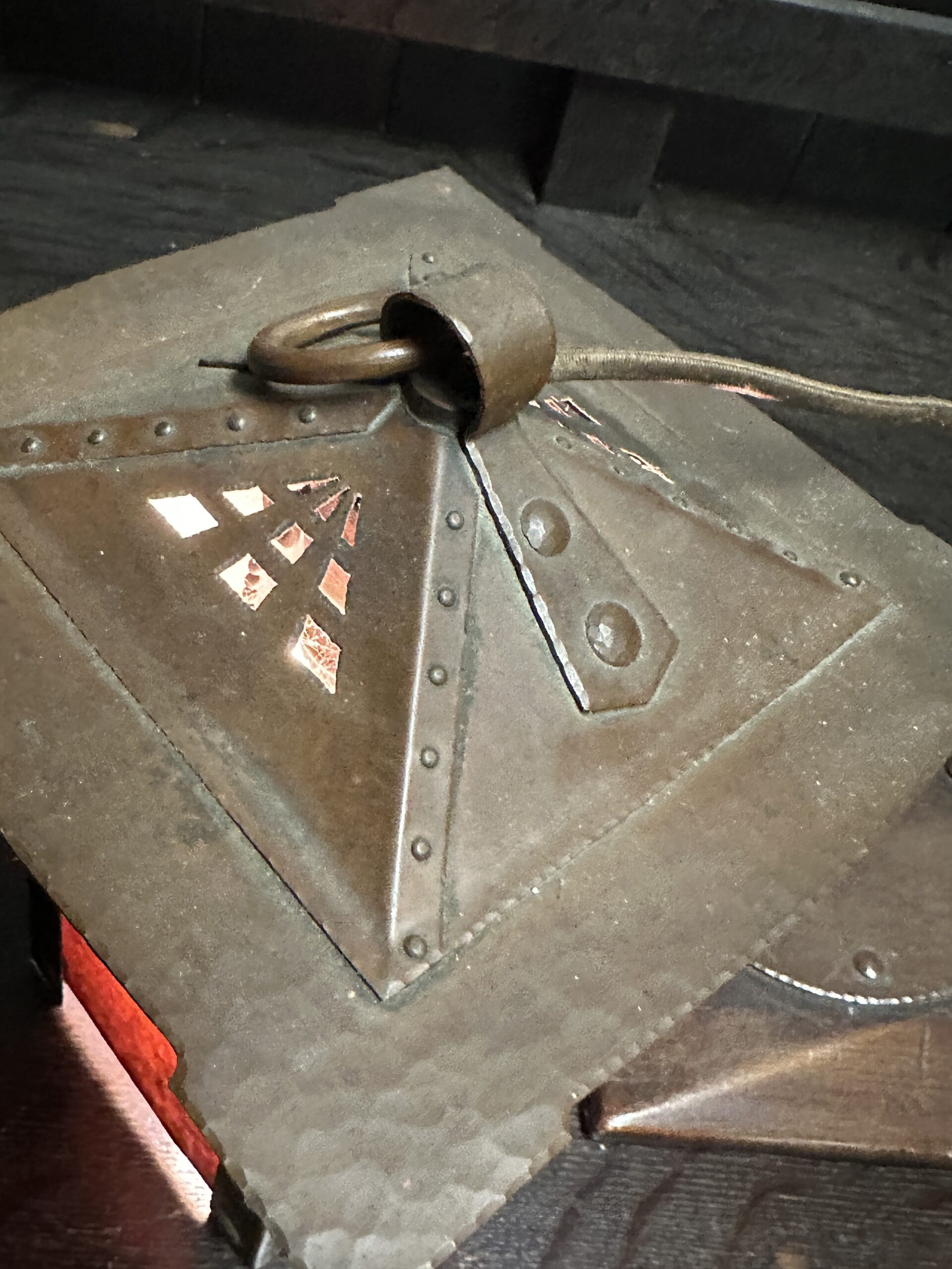 This is one of the nicest Benedict Studio Hand Hammered Lamps we’ve seen in the past 50 years. The hand-hammered base has great hammering and the mica shade has period glass, not modern, new glass. It is all original.