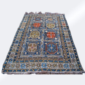 This is an antique Caucasian Kazak rug from the 1900-1910 period.