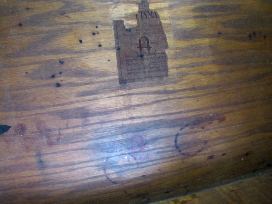 The side drawers have their original hand hammered copper pulls with pyramid screws.