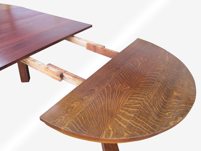 The table comes with five leaves and as you can see they are a different color. This happens because the table is in the light and fades differently than the leaves. For a fee, we can refinish these leaves and the table top so that they are the same color but we do not think you want to do.