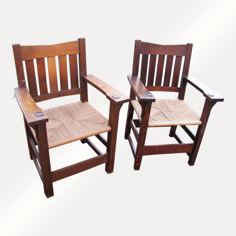 These are Antique Gustav Stickley V Back Armchairs from the early 1900's.