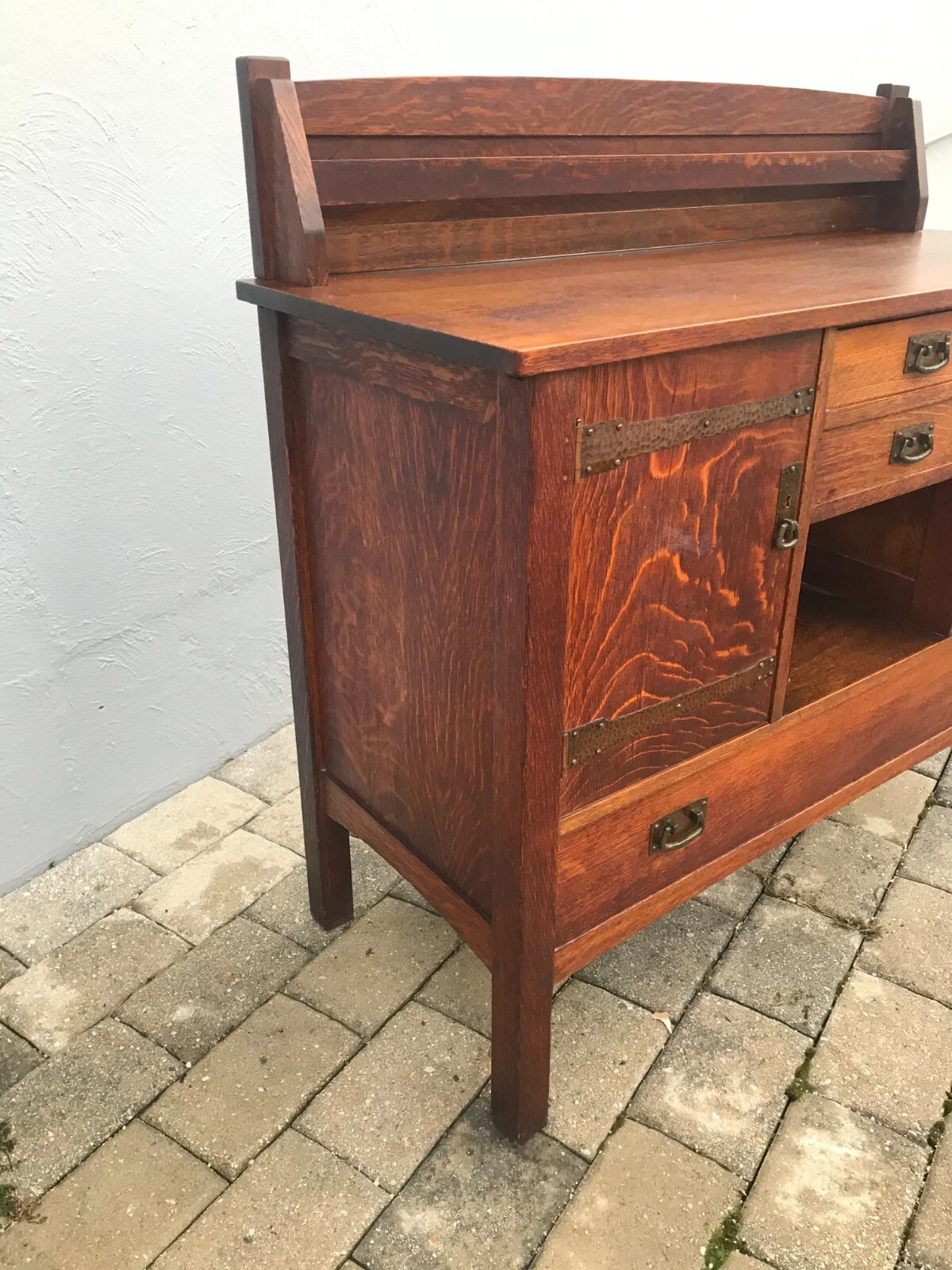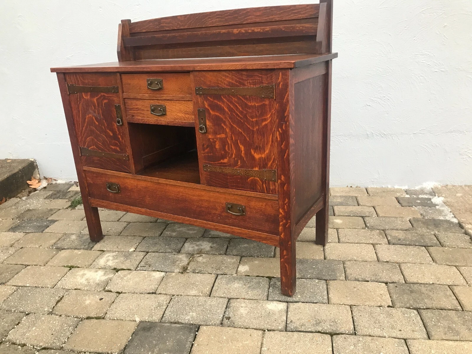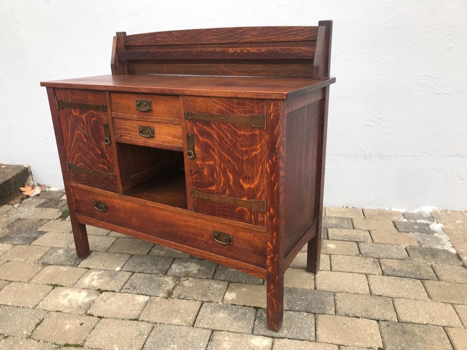 This sideboard made in the “HAND CRAFT” period from 1910 of L&JG Stickley with red decal.