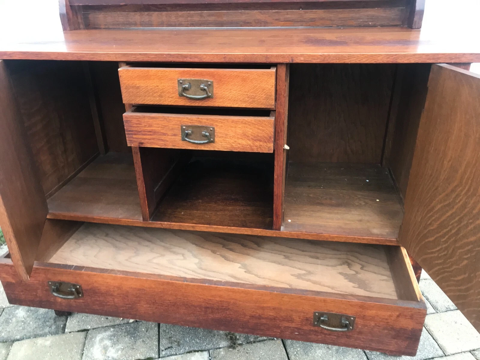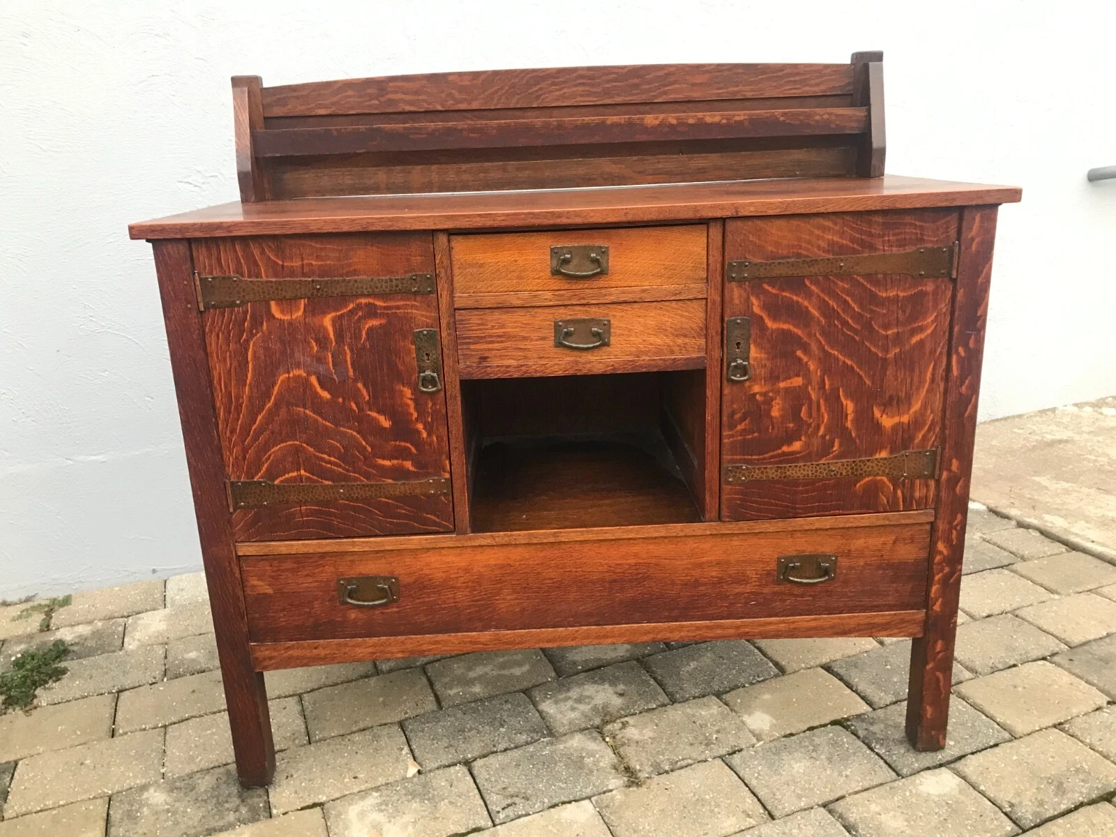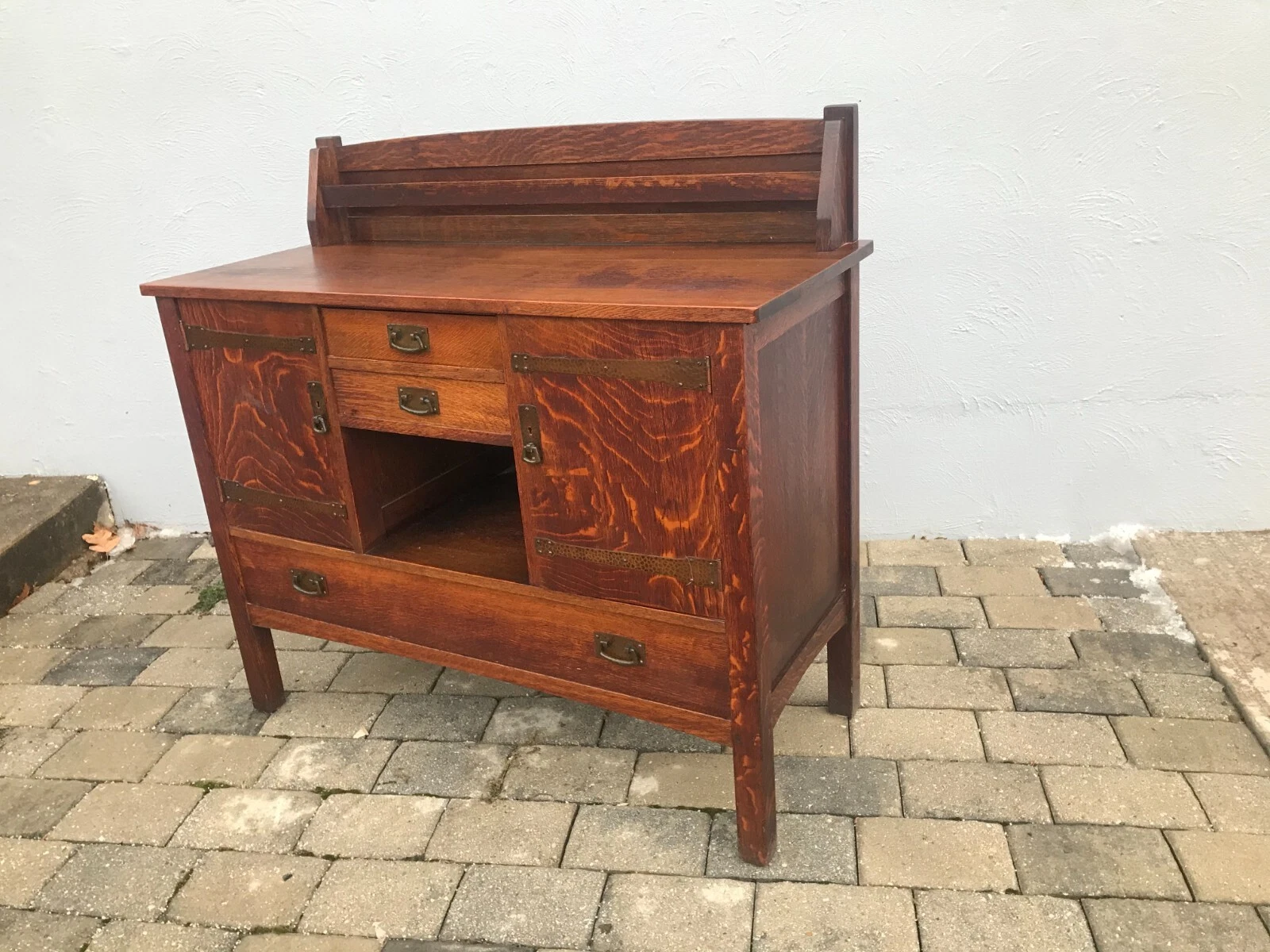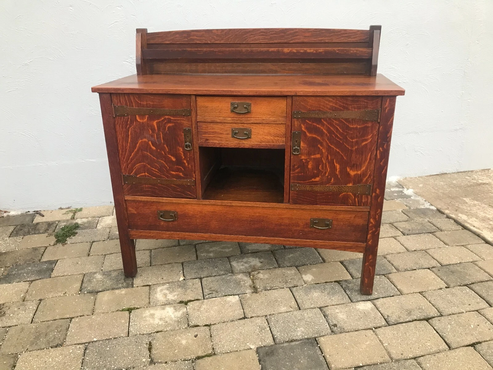This sideboard made in the “HAND CRAFT” period from 1910 of L&JG Stickley with red decal.
