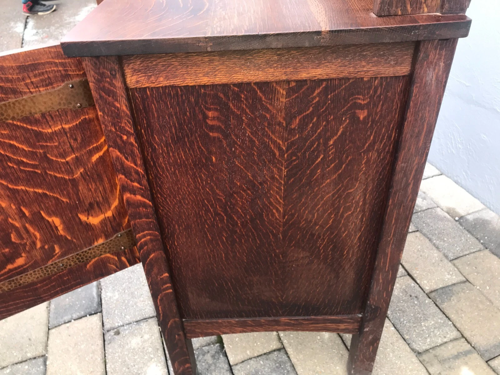 Made from quarter sawn oak with original finish the selection of oak is SUPERB as you see on many pictures we post ALSO the back of this cabinet is in good shape (we are telling you this because most cabinets selling in live auctions do not post the entire back pictures!).