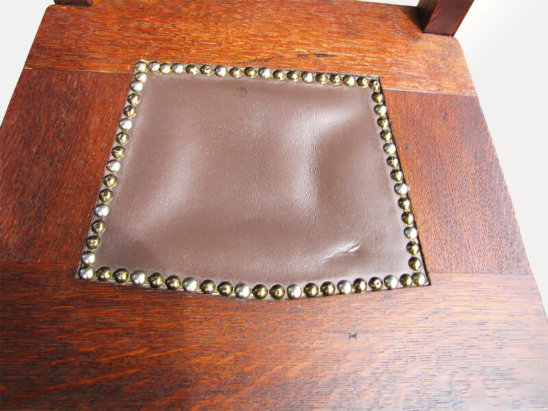 The leather has been replaced with a brown, but we can change the leather to black for no extra charge.