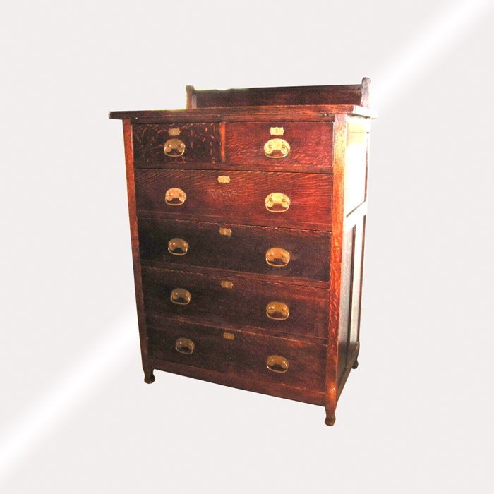 This is a great looking ROYCROFT chest of drawers from the early 1900s in pristine condition, great original finish and great selection of oak with no repairs or replace parts.