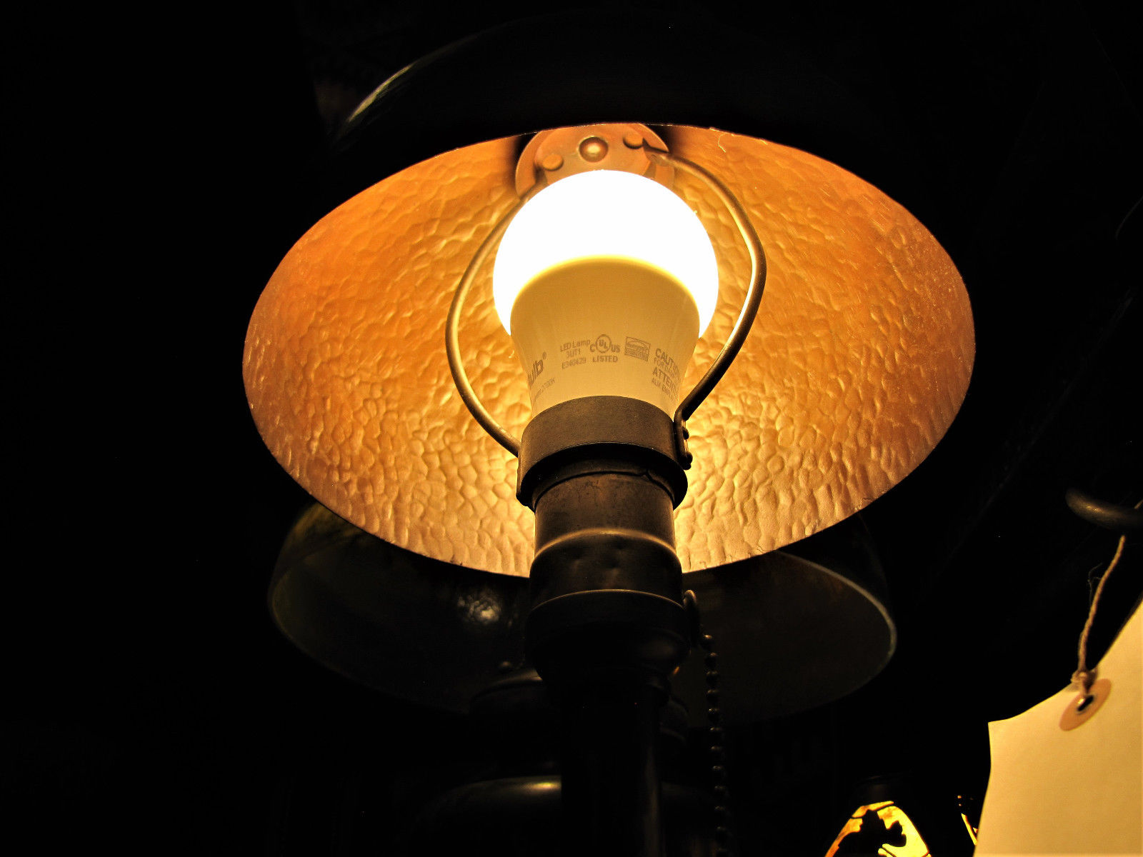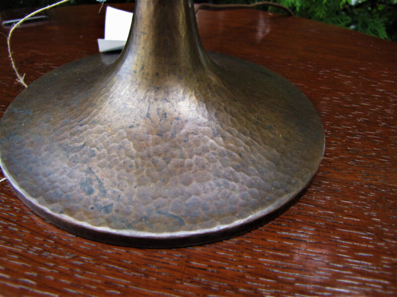 This lamp is a nice hammered copper and it has a great color and the original patina.