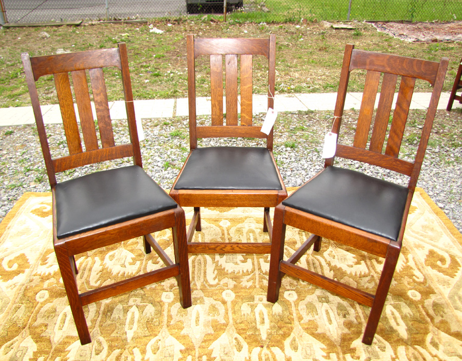 This is a set of three chairs Mission Arts&Crafts period?from the early 1900's in very good condition.