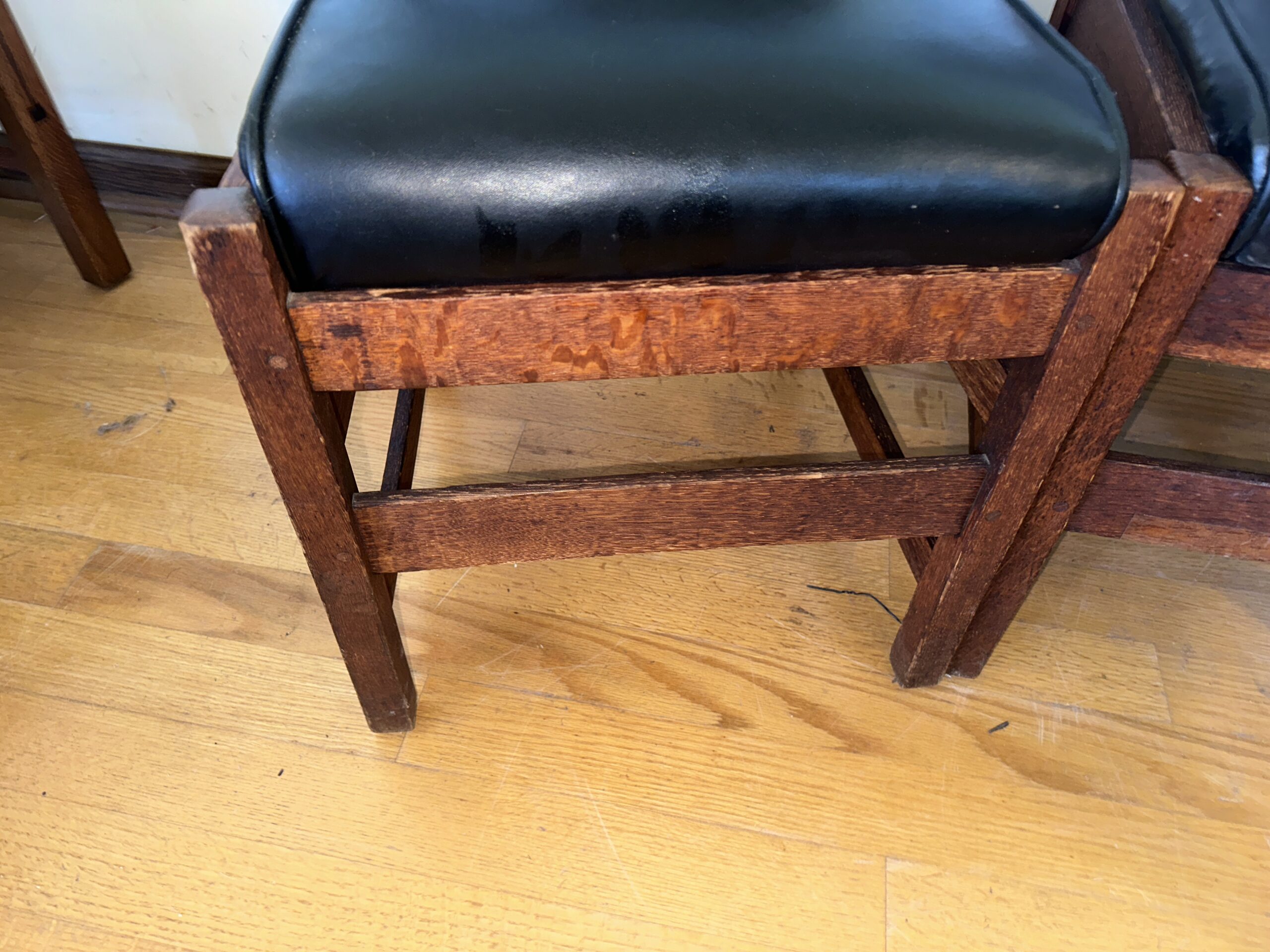 Set of 3 GUSTAV STICKLEY side chairs in good condition made with great selection of oak.