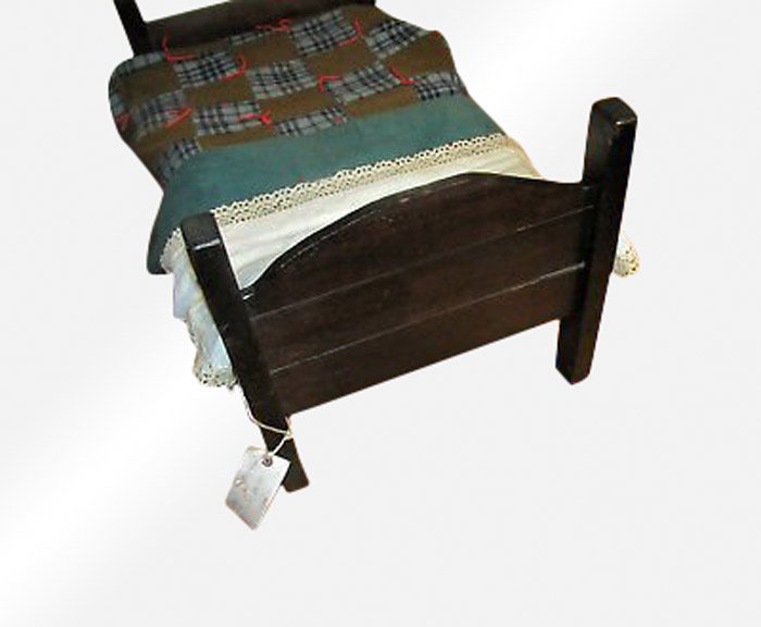 This is an Antique Small Doll or Child’s Oak Bed.