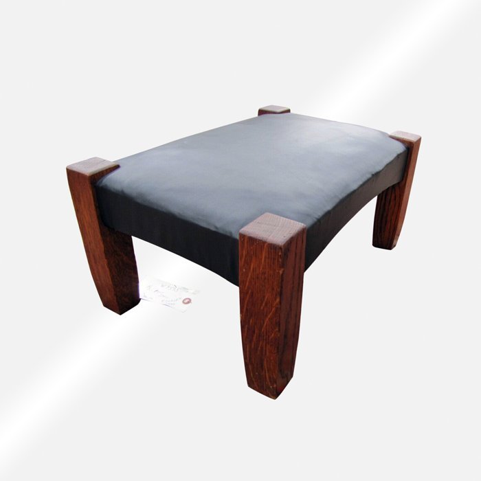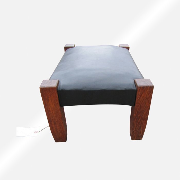 This is an antique STICKLEY BROTHER foot stool from the early 1900s Unsigned. The stool in a good condition with original cleaned finish, has been recover with top quality black leather filled with cotton and hair.