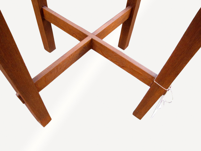 This is a nice Stickley Brothers lamp table in very good condition with old refinish and good selection of oak.