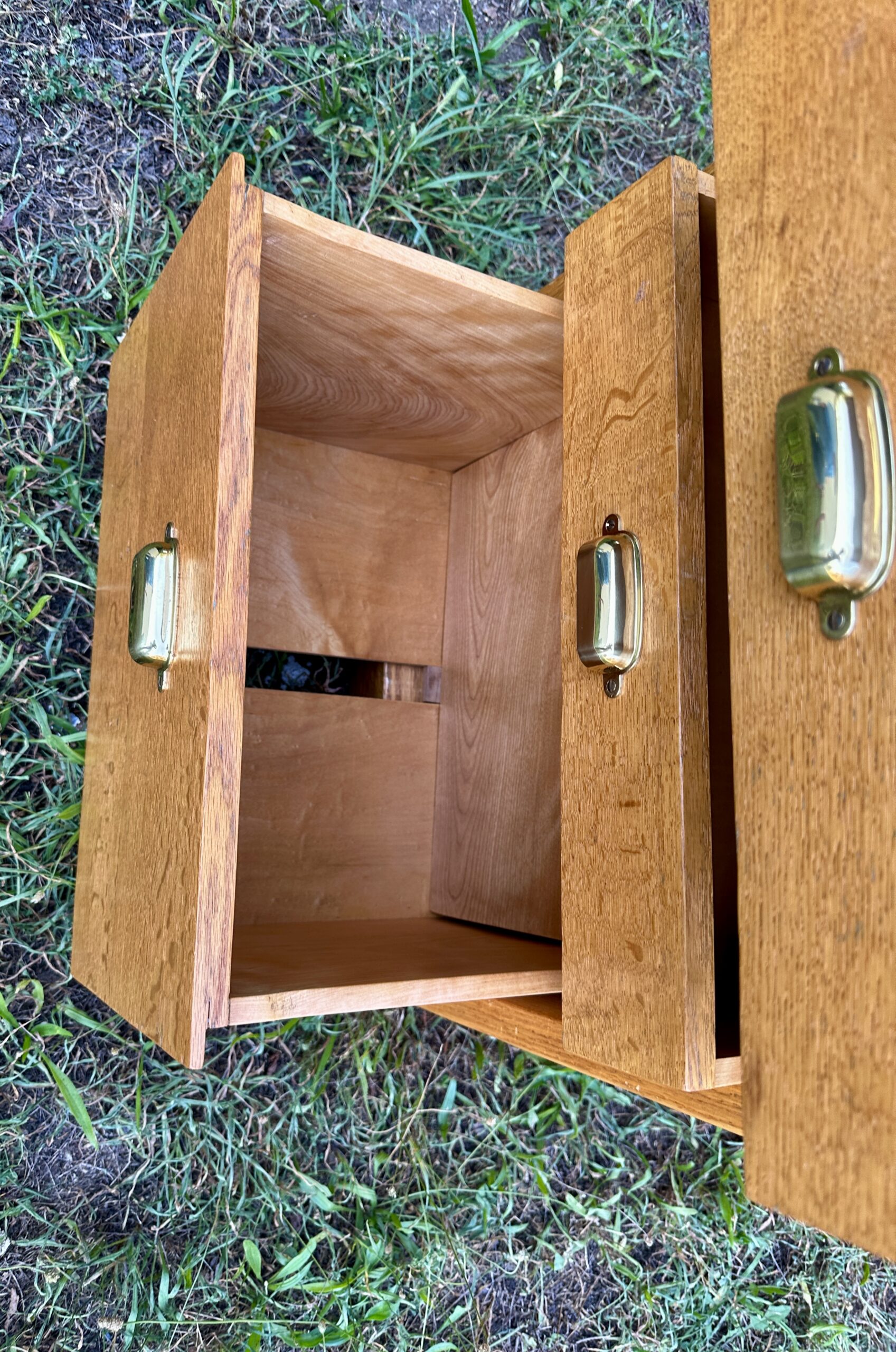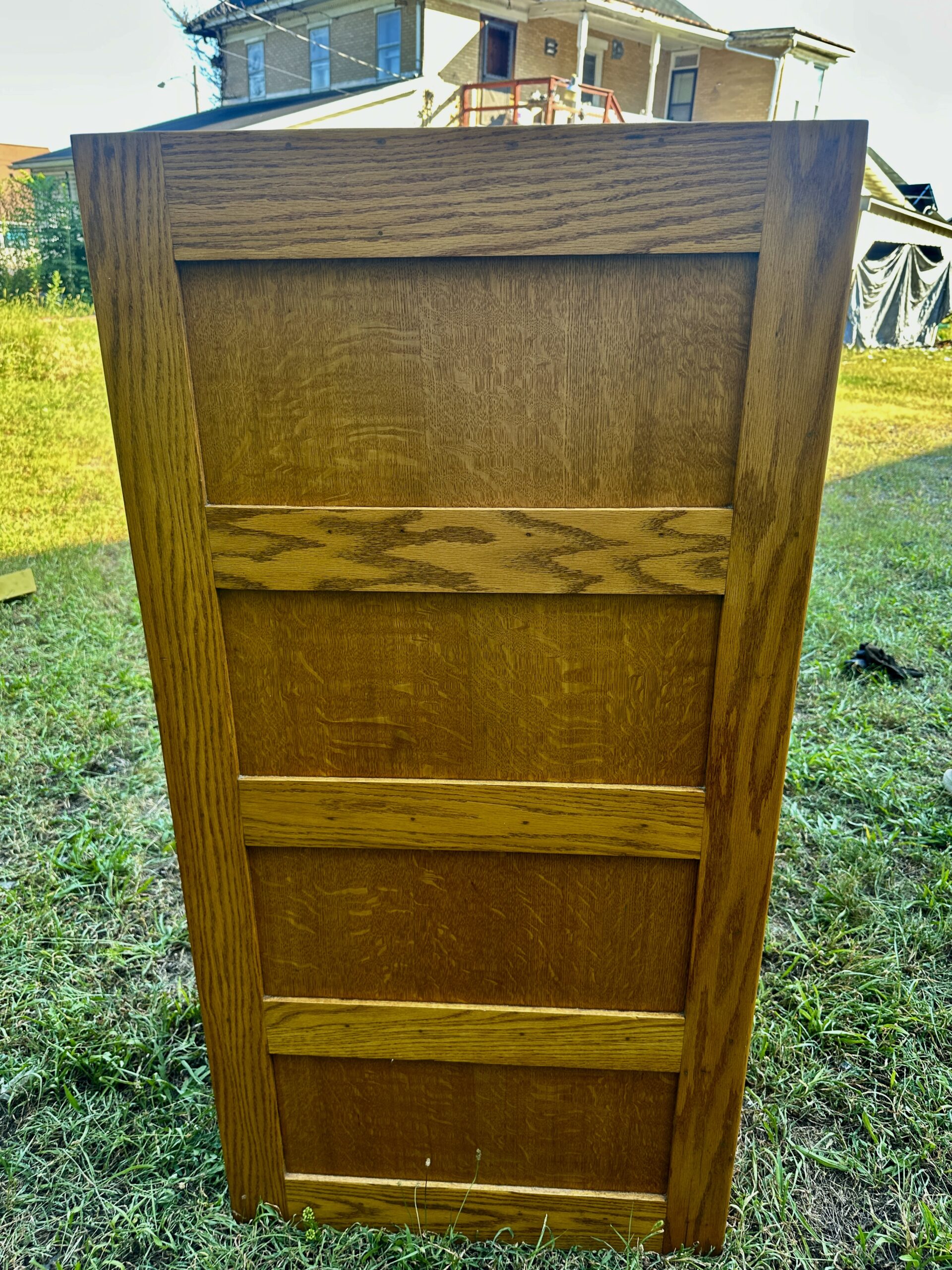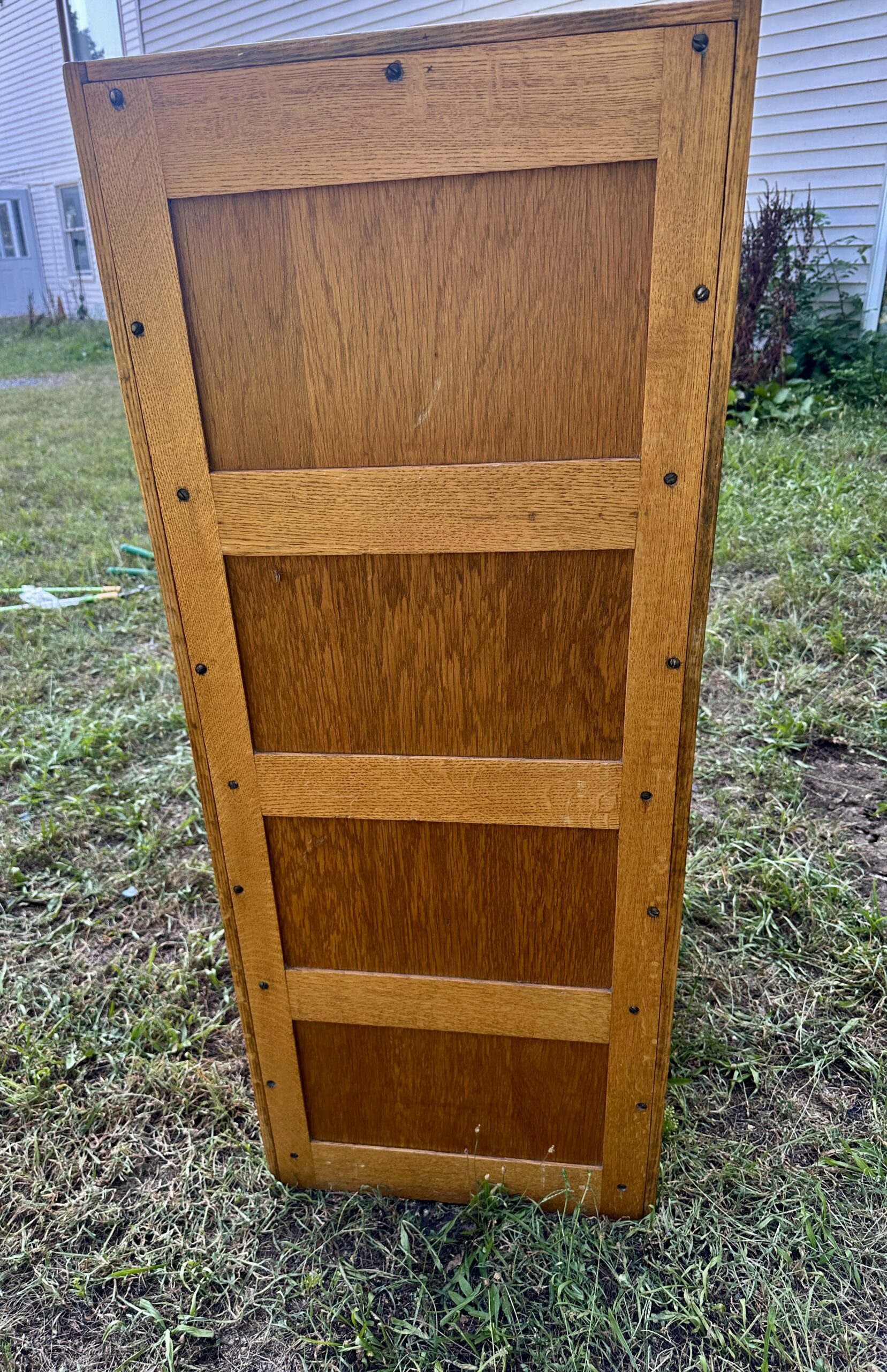 This is an antique file cabinet we purchased from an estate in Corning, New York. In excellent condition. We believe all the pulls are not original. The drawers are in perfect condition – easy in and easy out. There are no repairs on the piece. This cabinet is ready for use in your home or office.