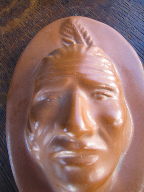 Antique Van Brigle Pair of Pottery Indian Heads w4927