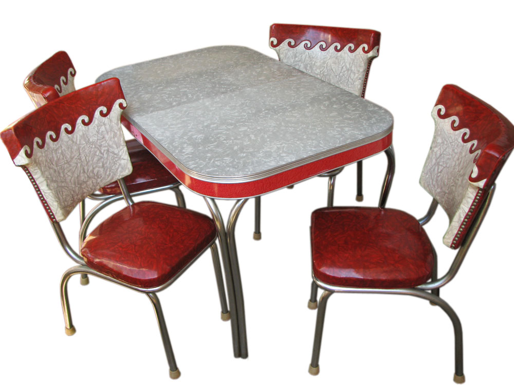 It is all original and is made of chrome, vinyl, and formica.
