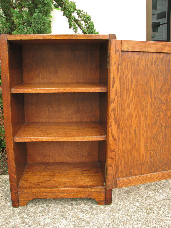 This is a nice antique Arts & Crafts cabinet from the early 1900s Mission period in very good condition.