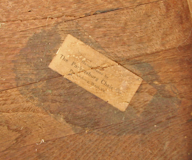 It is signed?with a Parkersburg Chair Co. from Parkersburg, West Virginia.
