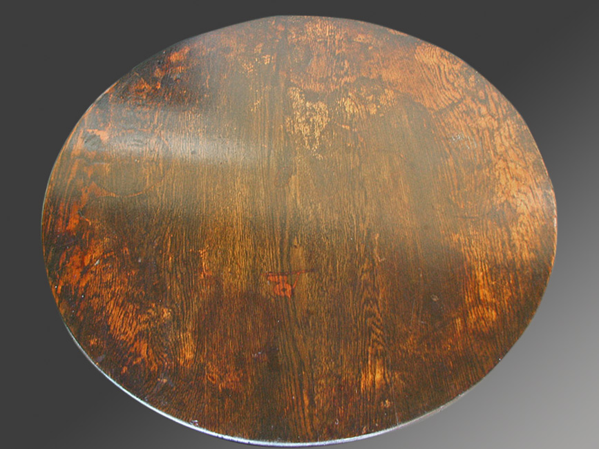 The piece is made of quarter sawn oak with an original dark finish on the base and a worn finish on the top.