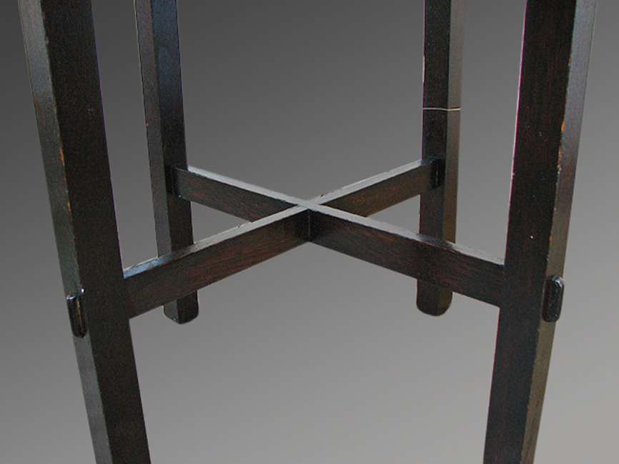 This is an antique Arts & Crafts lamp table from the early 1900’s Mission and Arts & Crafts period in good condition.