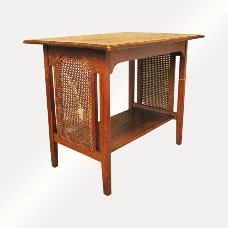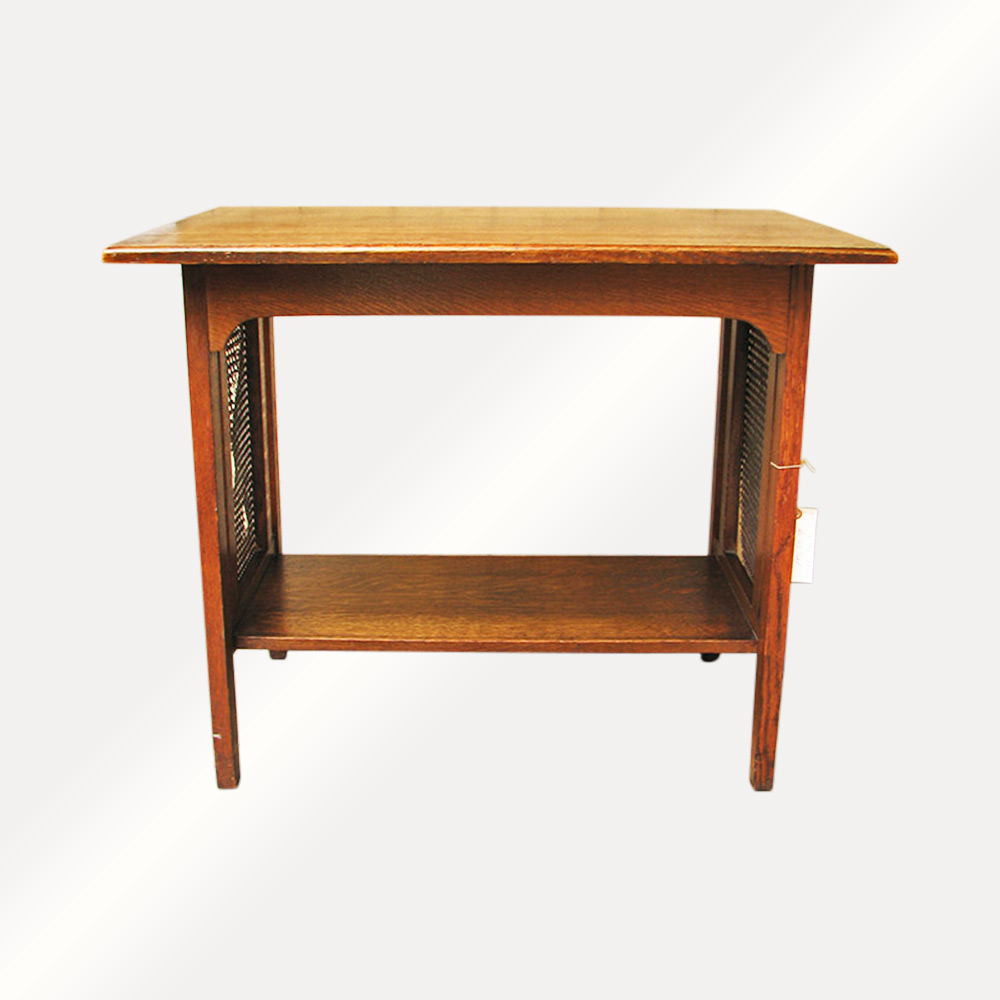 This is a well built table and may be by Stickley Brothers or Limbert, though it is unsigned.