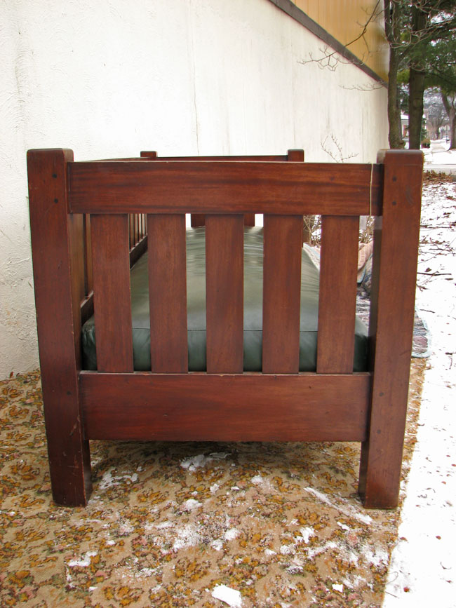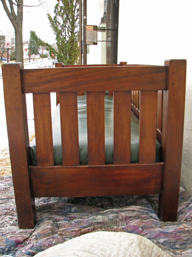This is a very nice antique Arts & Crafts mahogany settle from the early 1900’s Mission period in excellent condition.