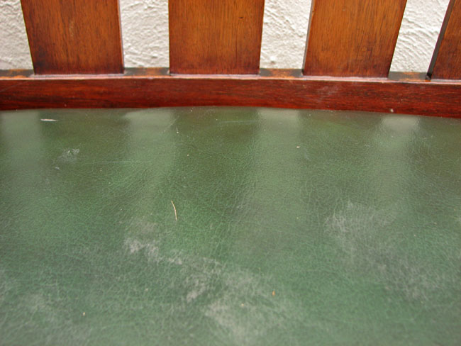 The original spring seat is present and is covered with good, dark green leather in excellent condition.