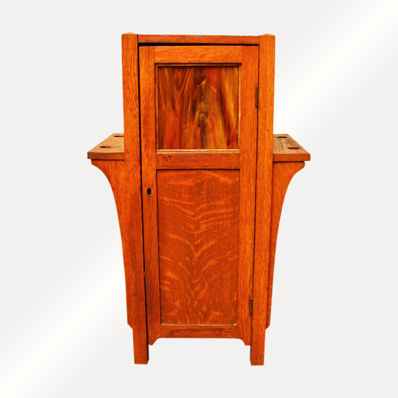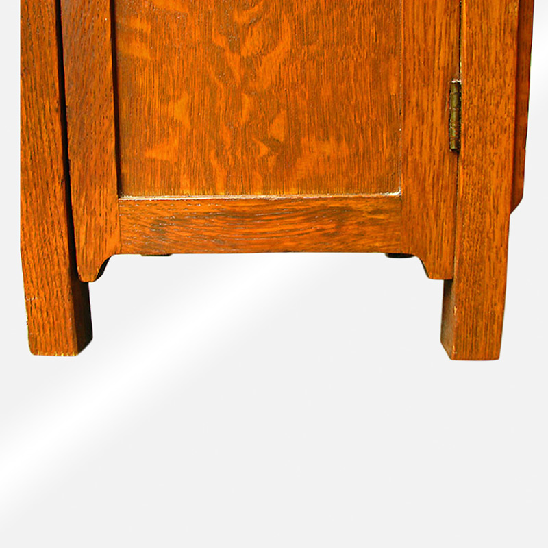 This is an antique Arts & Crafts small cabinet from the early 1900s Mission period in good condition.