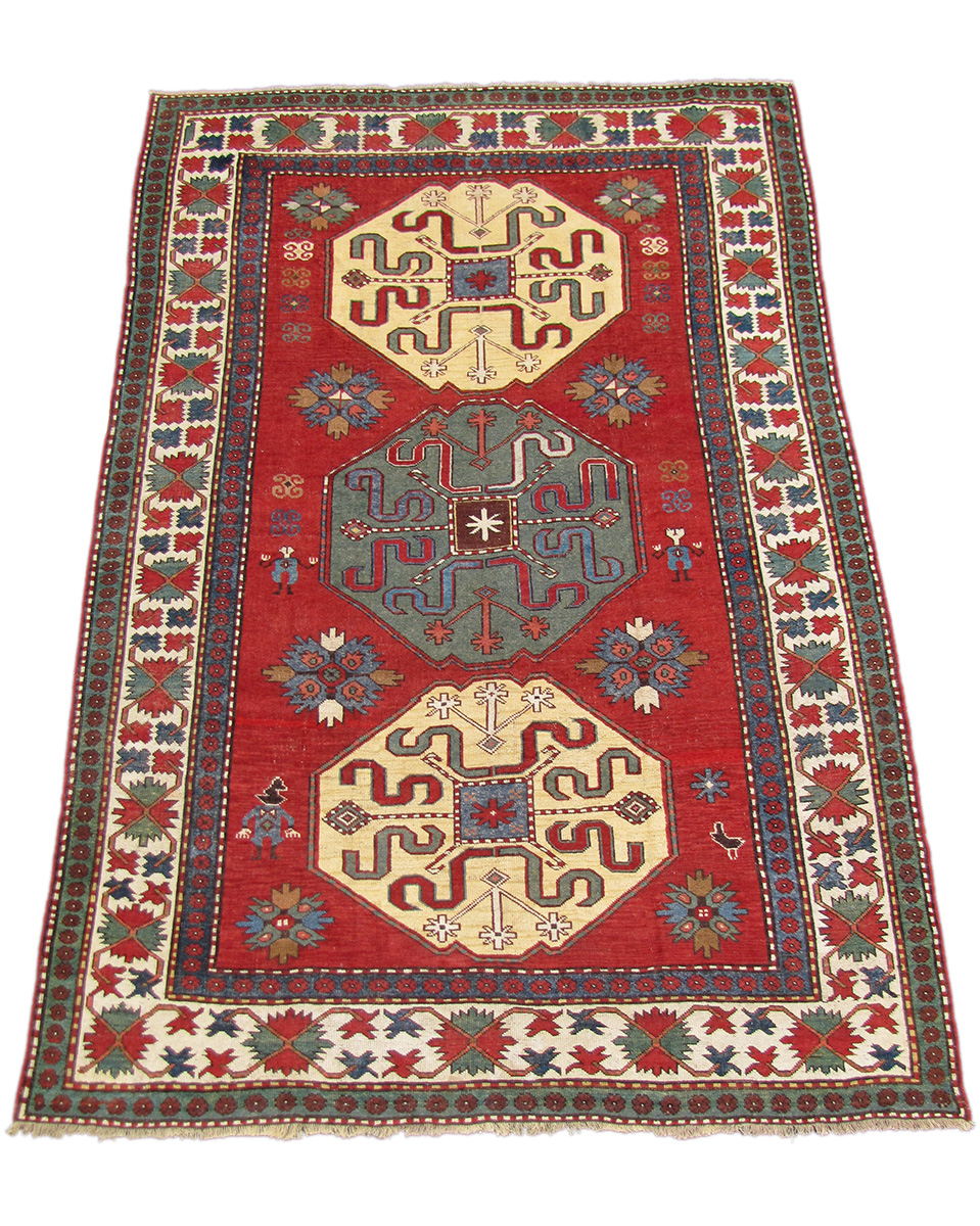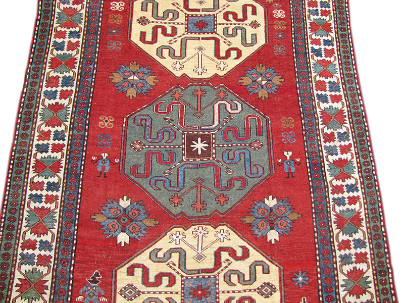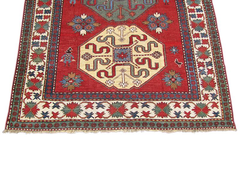 This is a superb antique Caucasian Kazak oriental rug from the 1890s in very good condition.