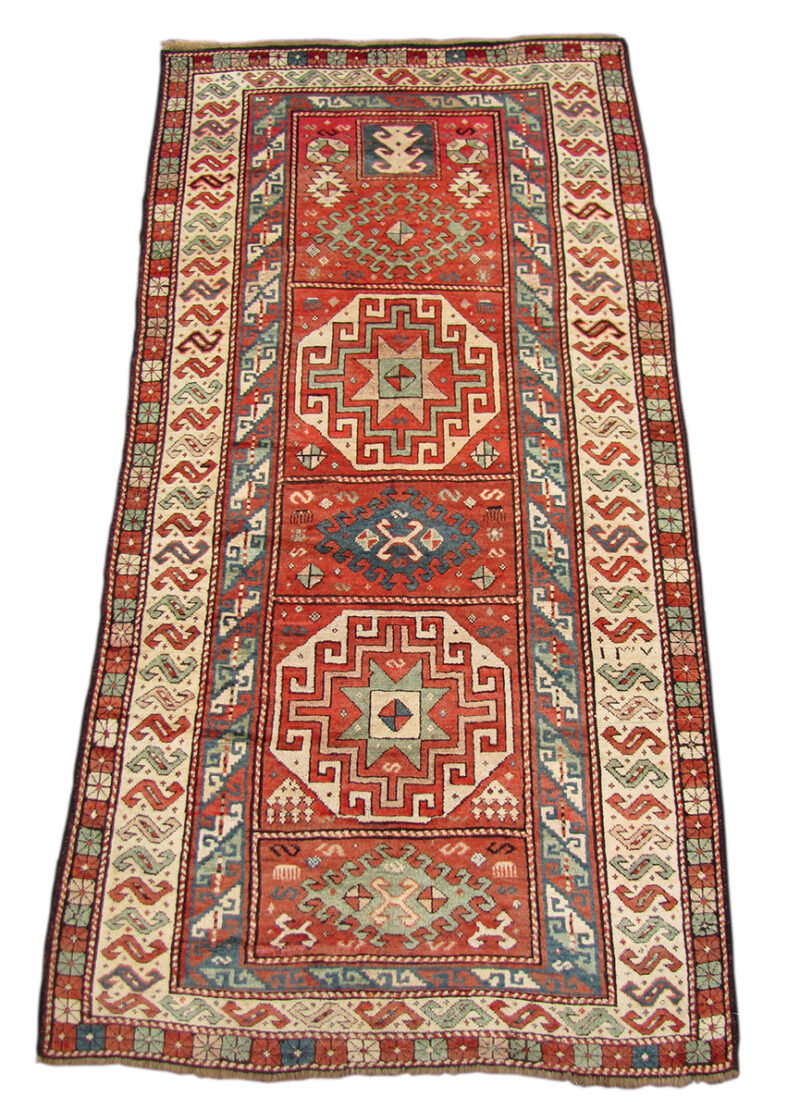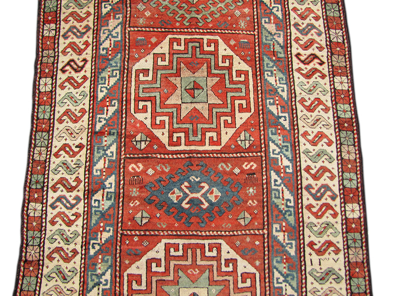 This is a superb antique Caucasian Kazak oriental rug from the 1890s in very good condition.