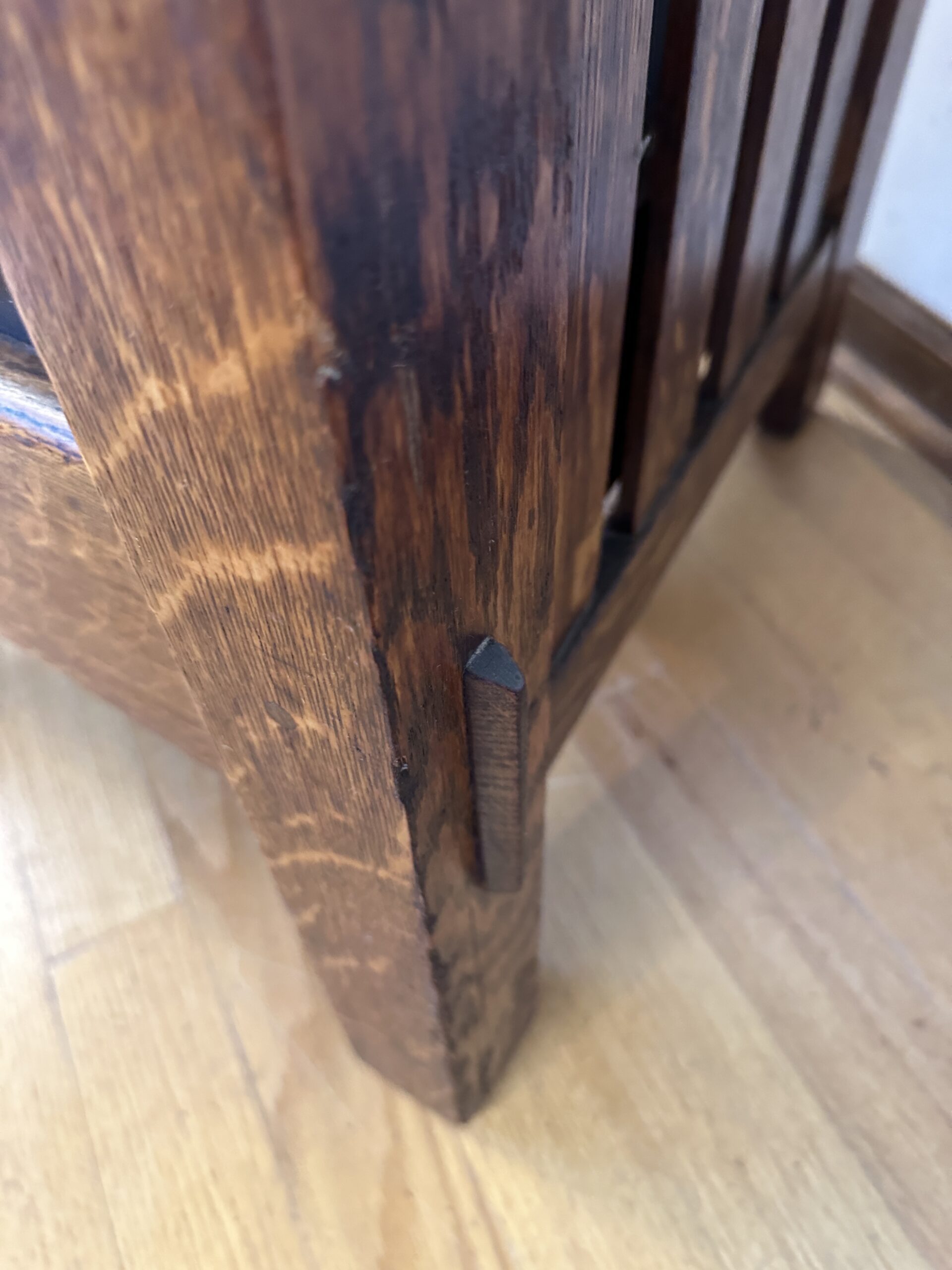 Made out of fantastic quarter sawn oak with real thru tenon, and double pinned.