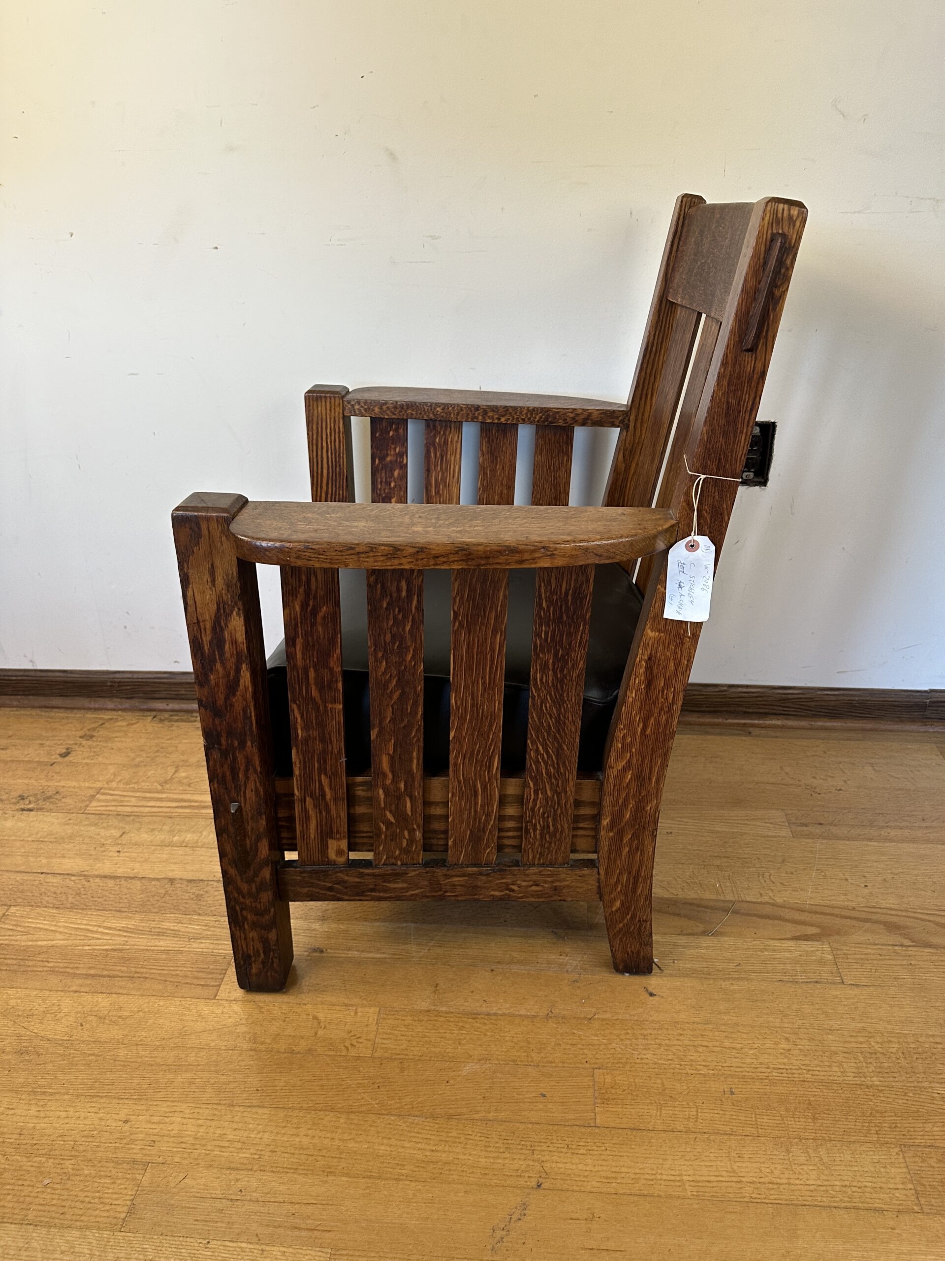 This is a Charles Stickley large arm chair with slots on the sides and back.