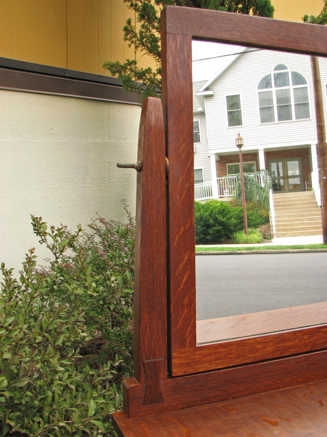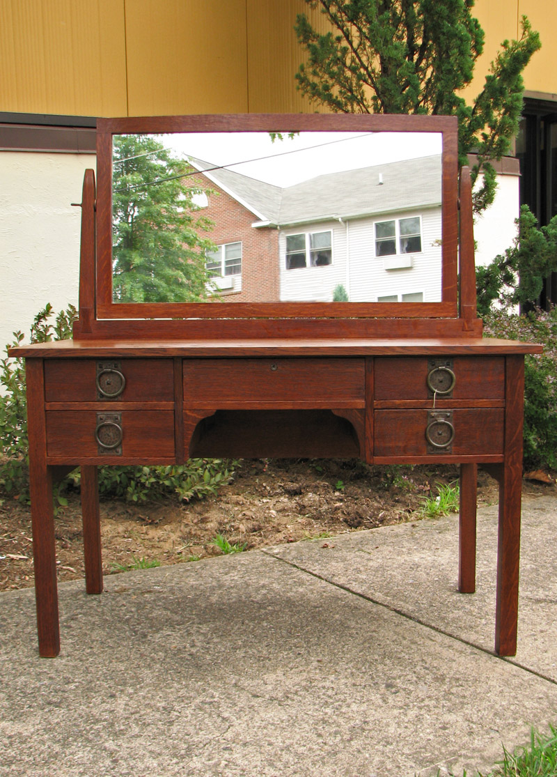 This is a superb antique Gustav Stickley mirrored vanity from the early 1900’s Mission and Arts & Crafts period in excellent condition.