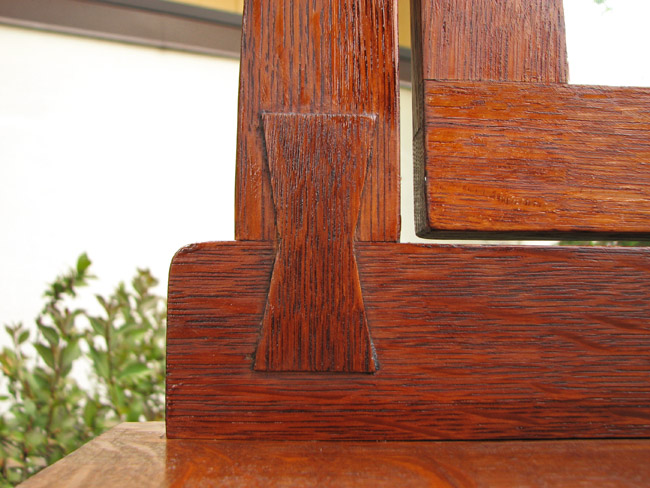 The mirror frame has butterfly dovetail joinery as pictured and the glass has no damage.