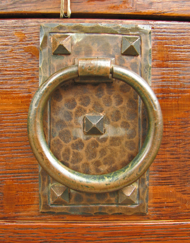 There is superb original hand hammered copper hardware including massive ring pulls with pyramid screws.