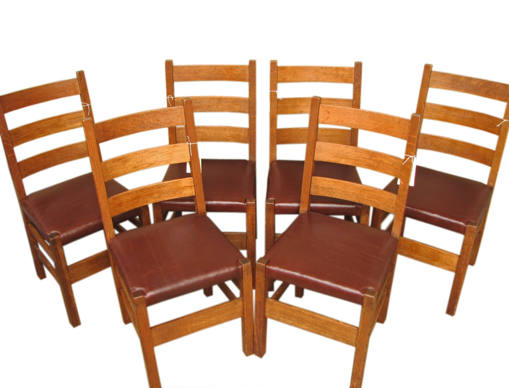 This is a great set of 6 antique Gustav Stickley side chairs from the early 1900’s in very good condition.
