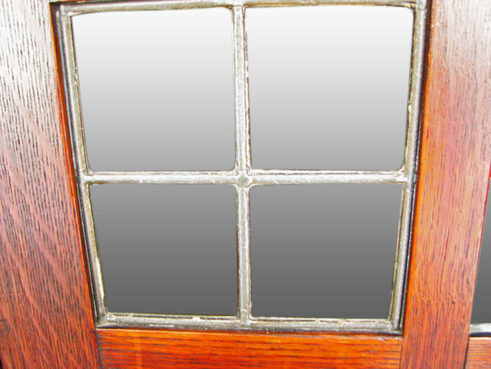 The doors consists of four separate panes of glass with two panes of leaded glass at the top.