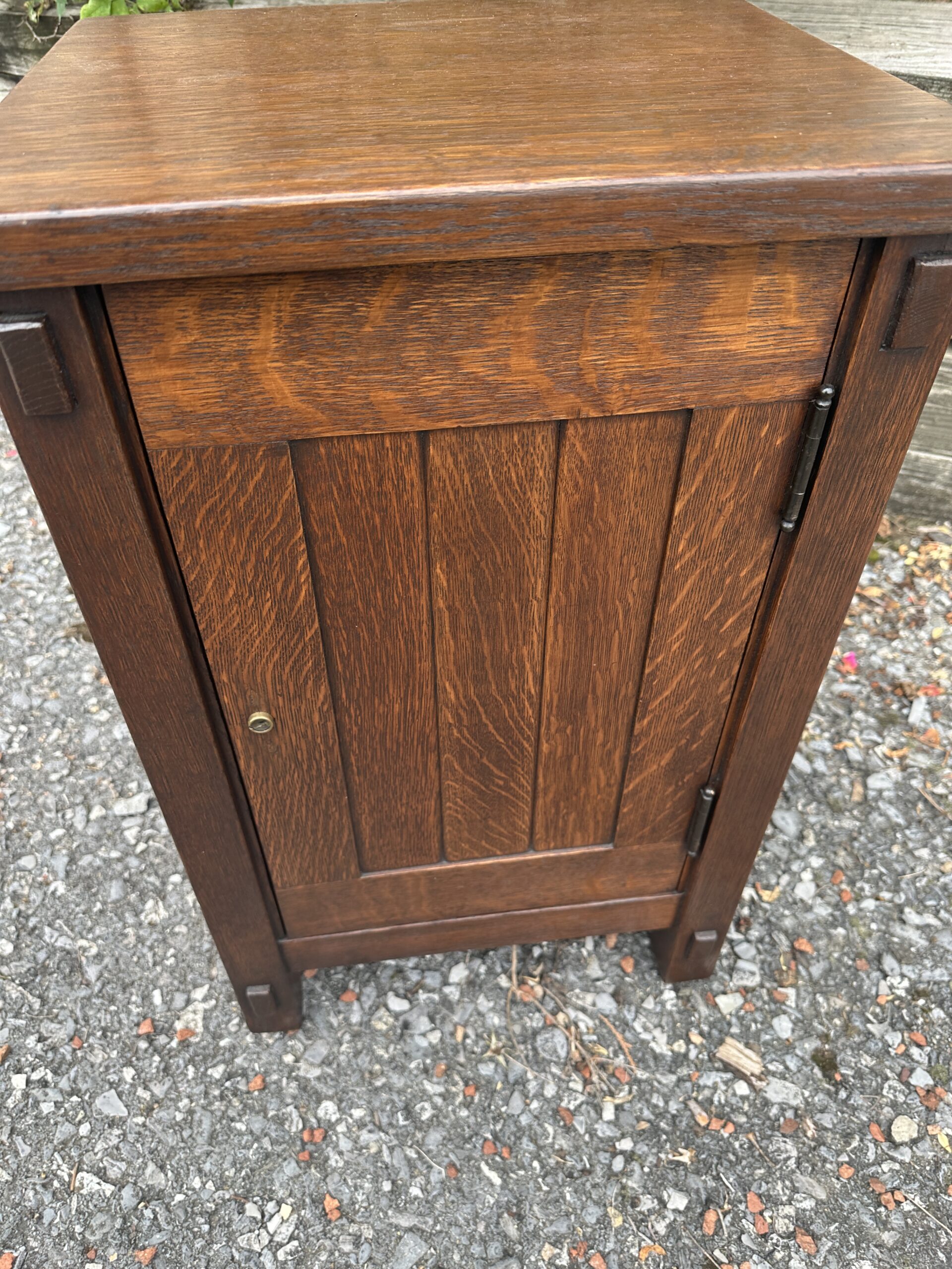 This is a SUPERB GUSTAV STICKLEY CELARET small cabinet signed with the red decal with 12 Thru tenon construction