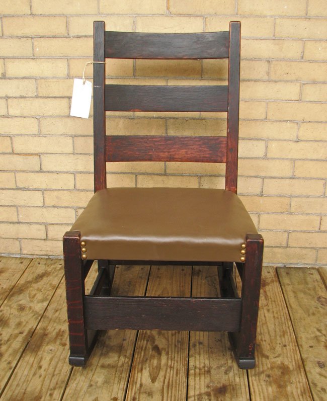 This is a nice antique Gustav Stickley sewing rocker from the early 1900’s Mission and Arts & Crafts period in very good condition.