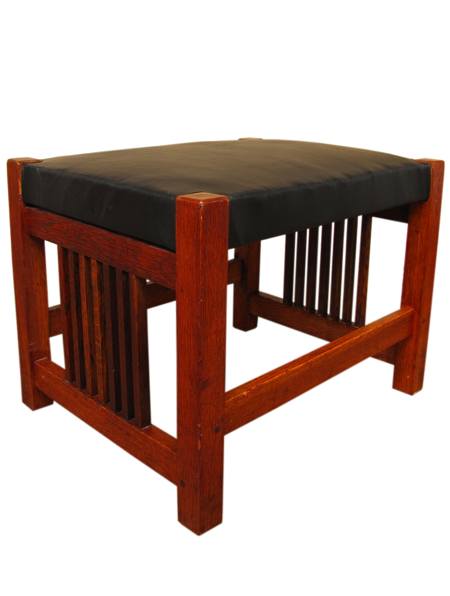This is a good antique Gustav Stickley spindled footstool from the early 1900s?Mission and Arts & Crafts period in very good condition.