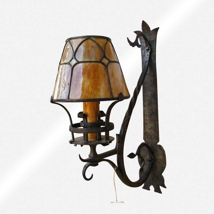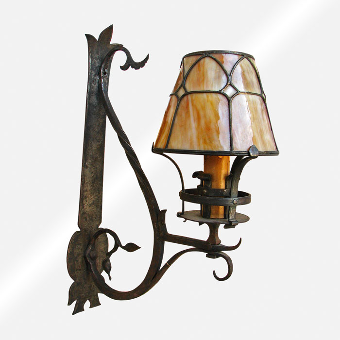 This is a superb antique Hagert wrought iron wall sconce from the early 1900?s Arts & Crafts period in very good condition.