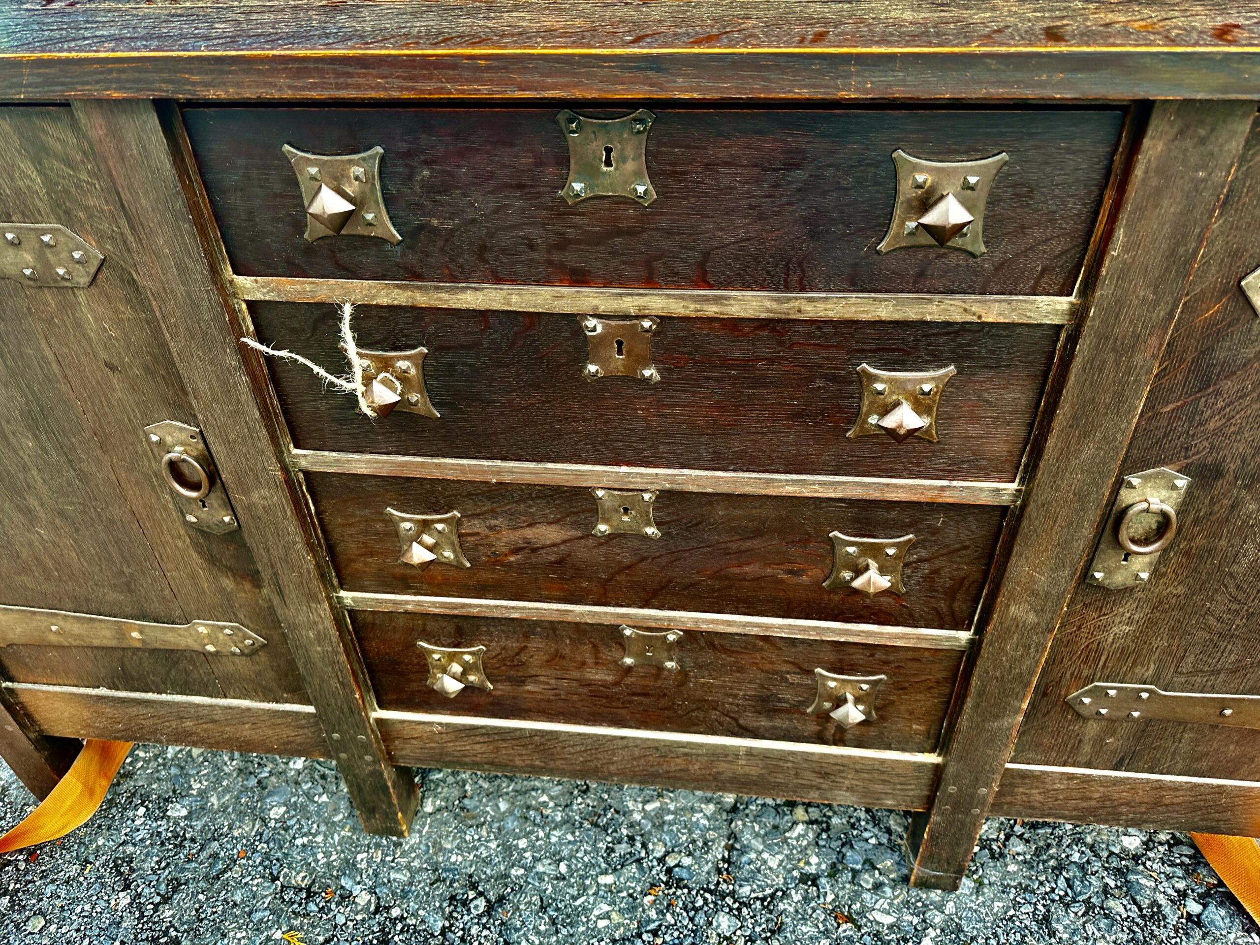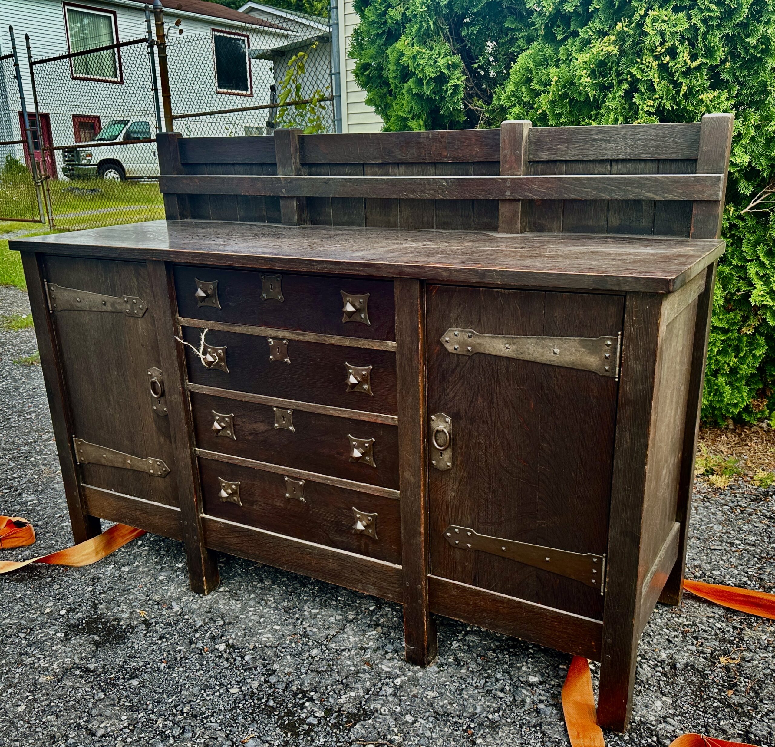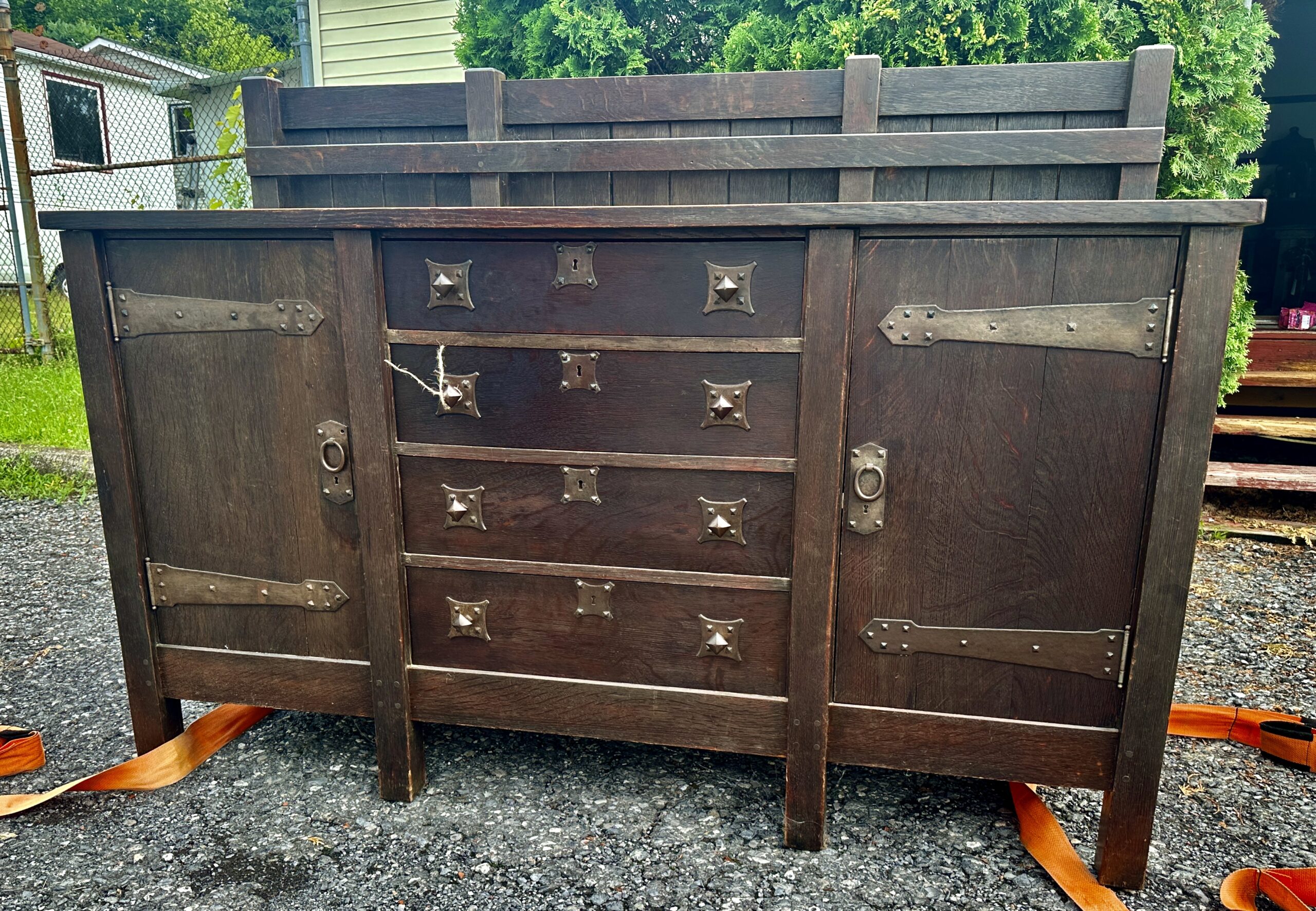 Important 1901 Gustav Stickley 8-Leg Sideboard w/ 8 Iron Star Pulls. Fantastic hardware!