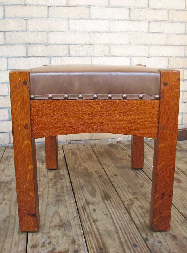 This is a nice antique L&JG Stickley footstool from the early 1900s Mission and Arts & Crafts period in very good condition.