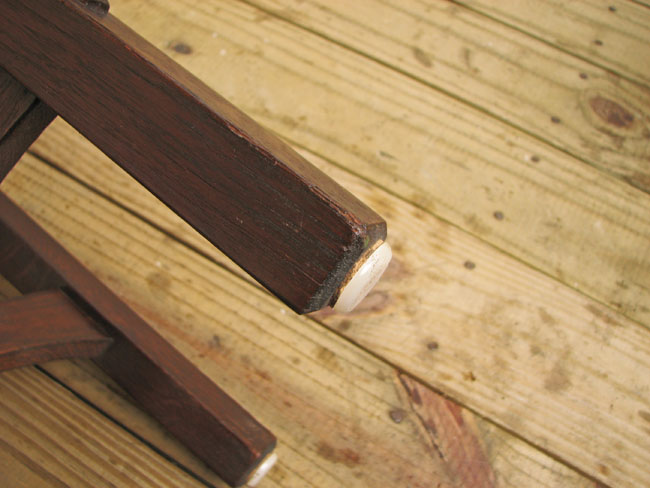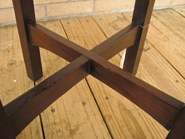 The piece has nice form with mortised through tenon legs. It has an old refinish.