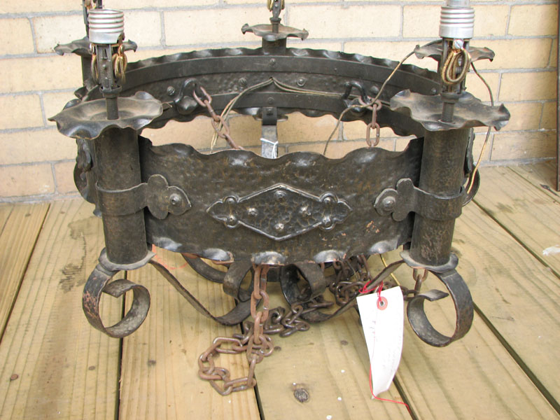 This is a pair of great antique hammered iron chandeliers from the early 1900’s in very condition.