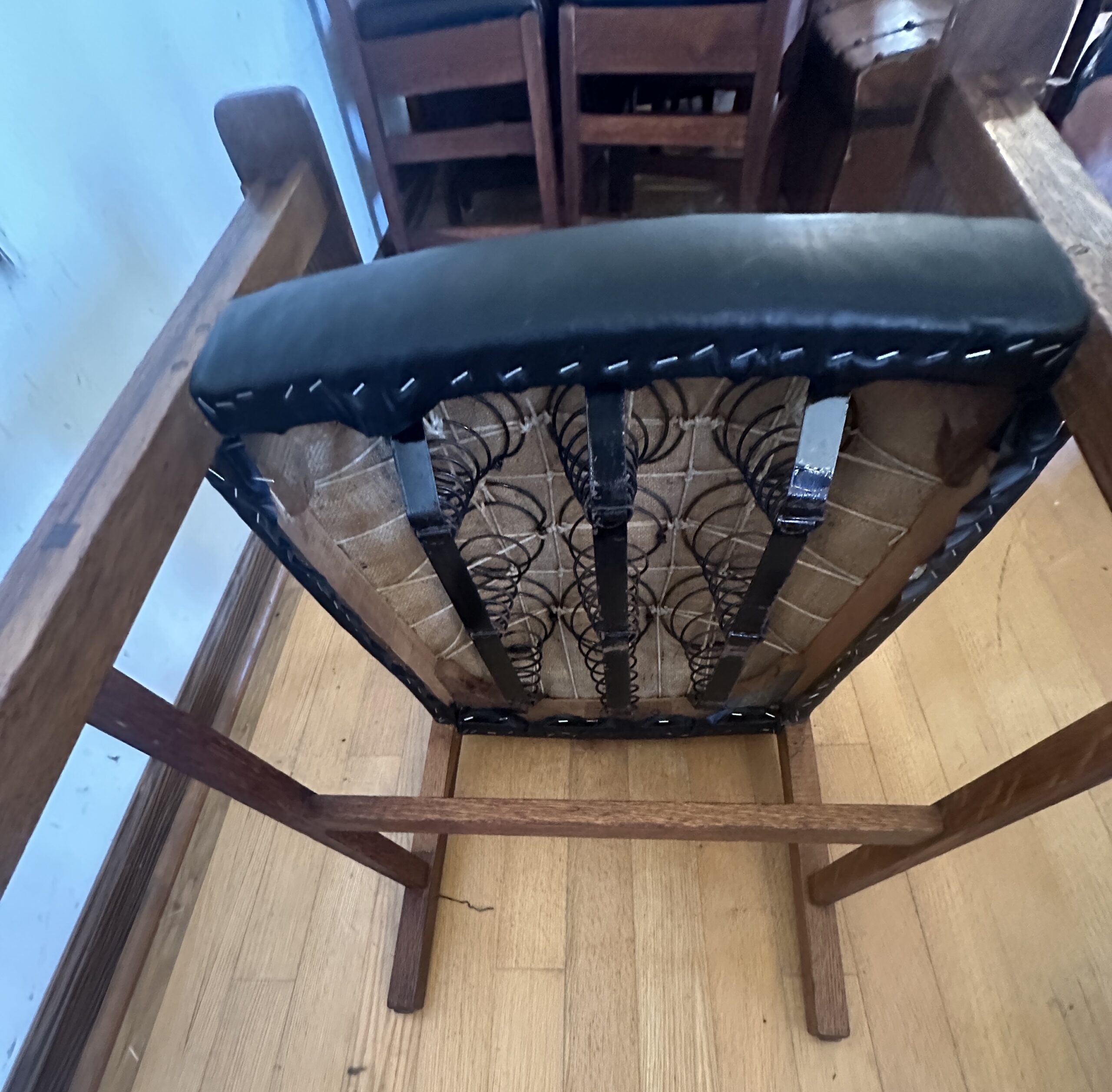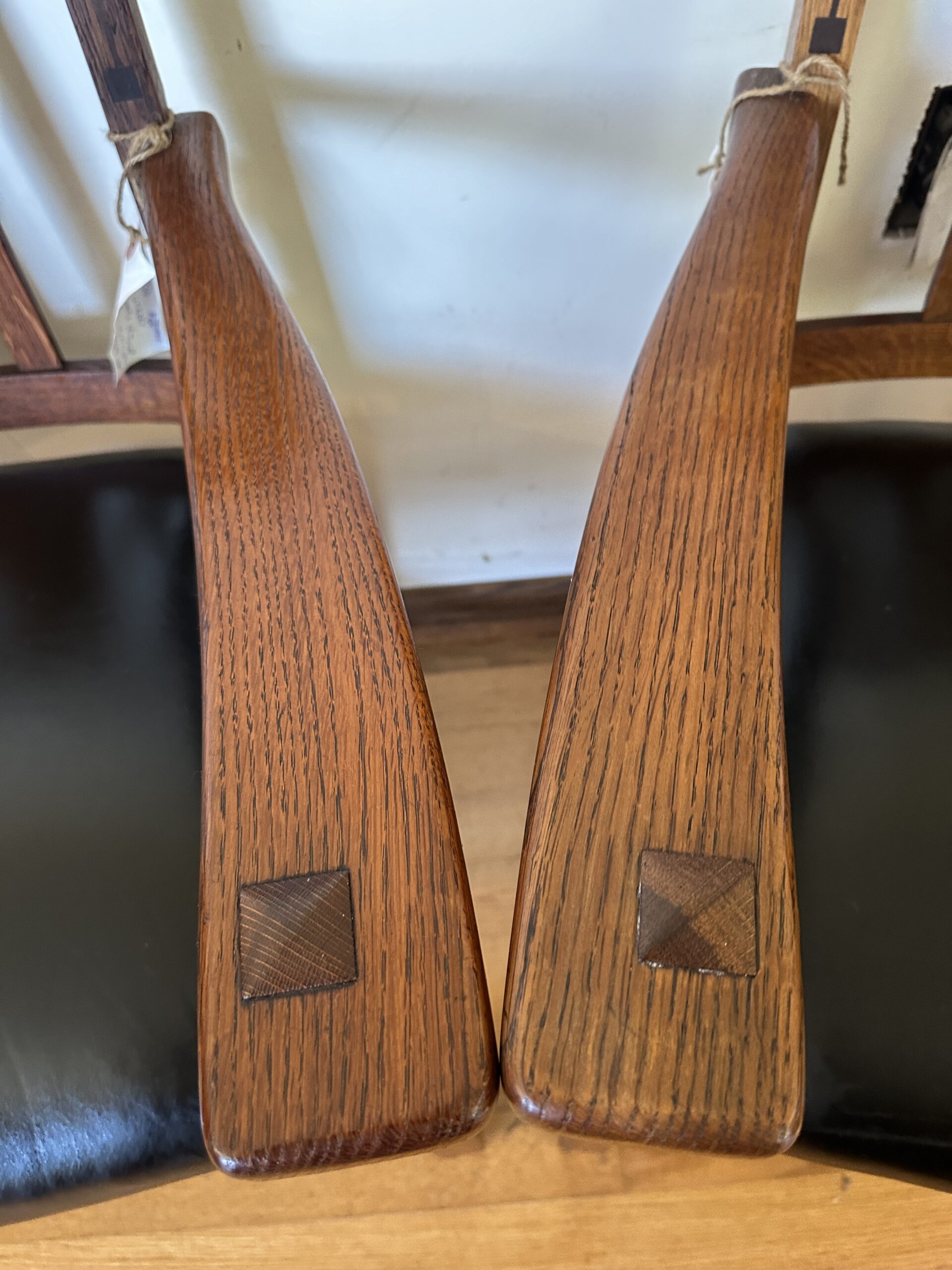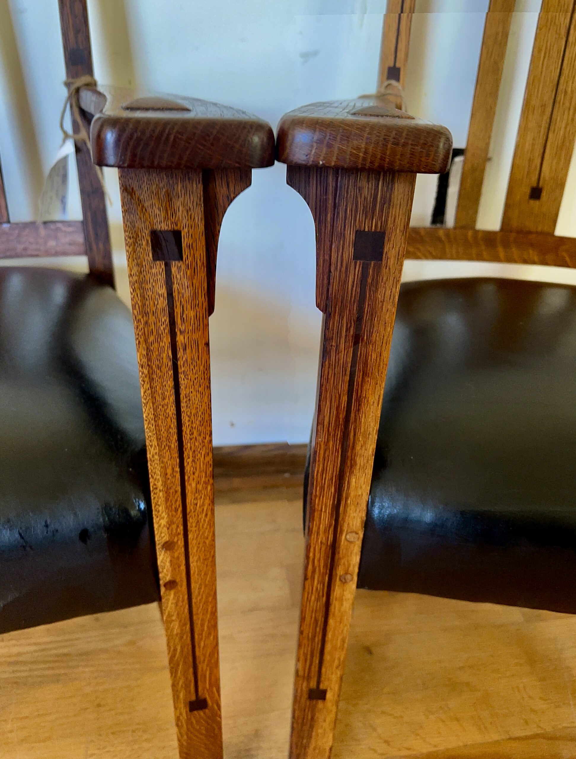 Pair of Limbert arm chairs with inlay and original spring seats – w7830